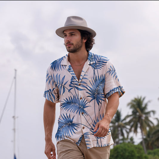 "Sapphire Palm Serenity" Hawaiian Shirt - 100% Cotton