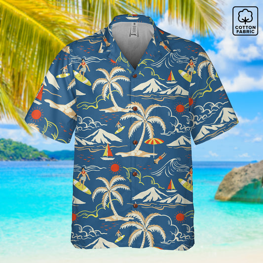 "Surfin', Sailin', and Tsunami" Hawaiian Shirt - 100% Cotton