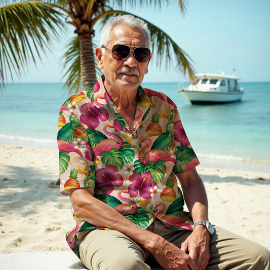 "Pink Flamingo Carnival" Hawaiian Shirt - 100% Cotton