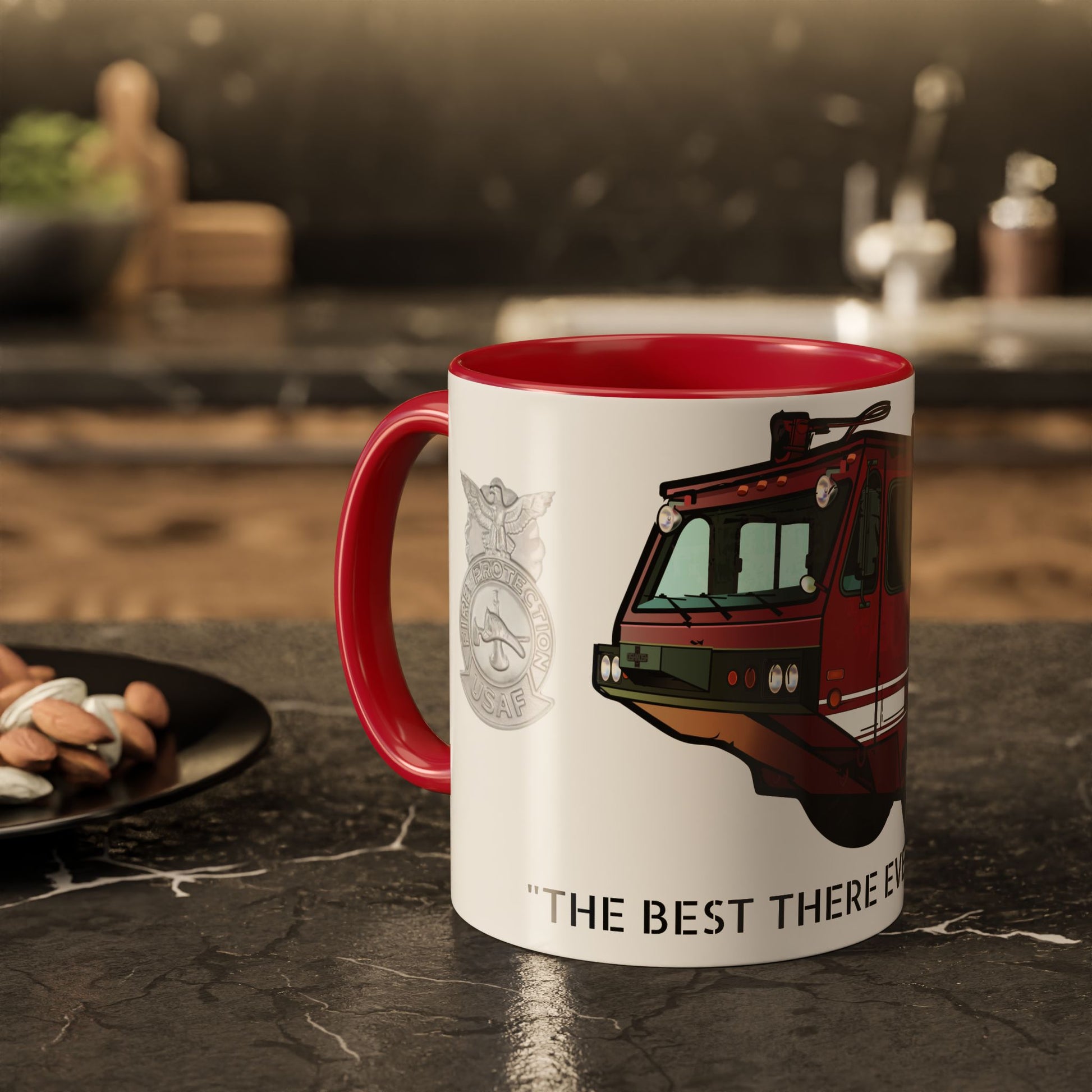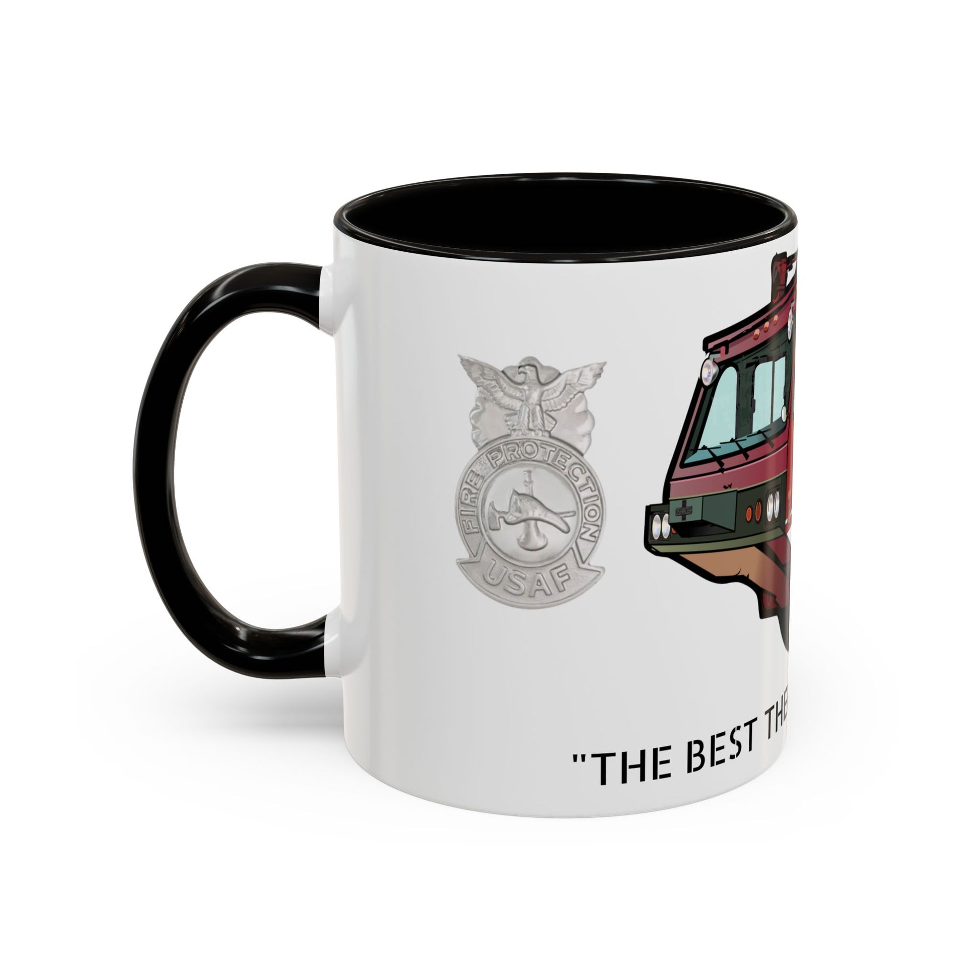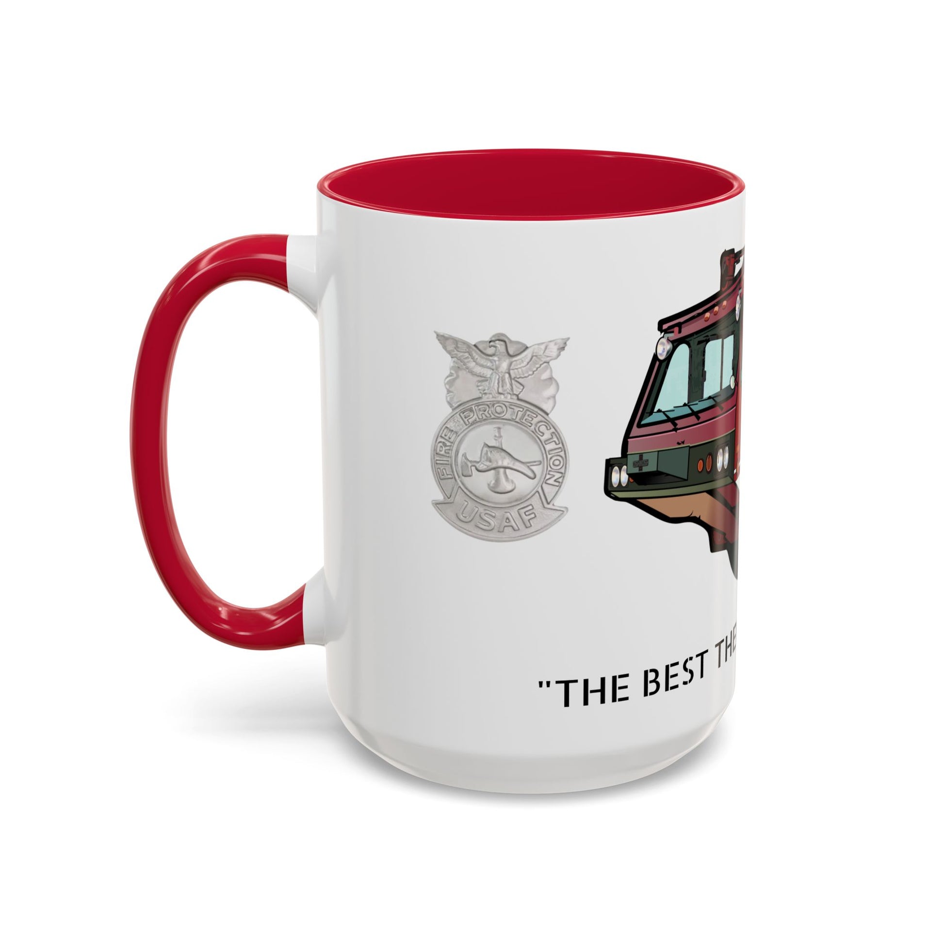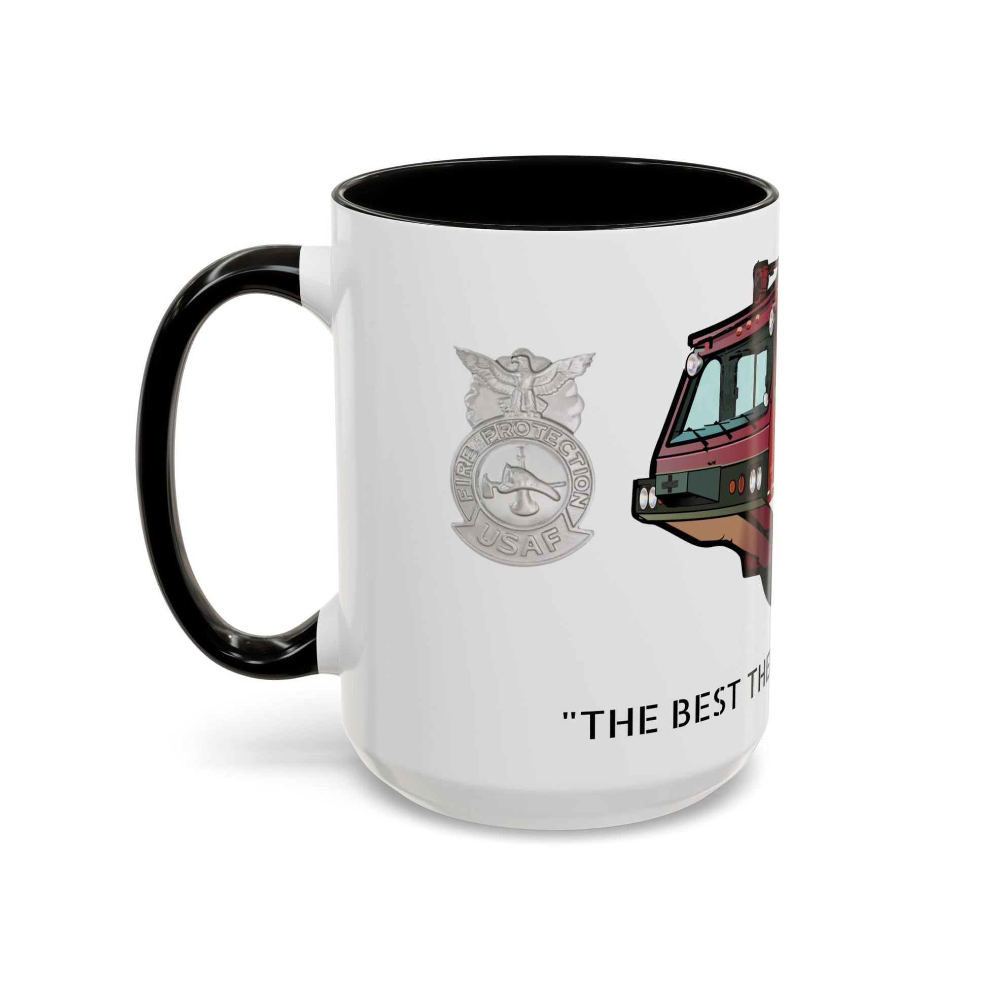 Part of our Goodfellow Era Series. This Firefighter heritage mug honors four decades of service, skill, and pride — celebrating the truck that defined USAF Crash Fire Rescue.