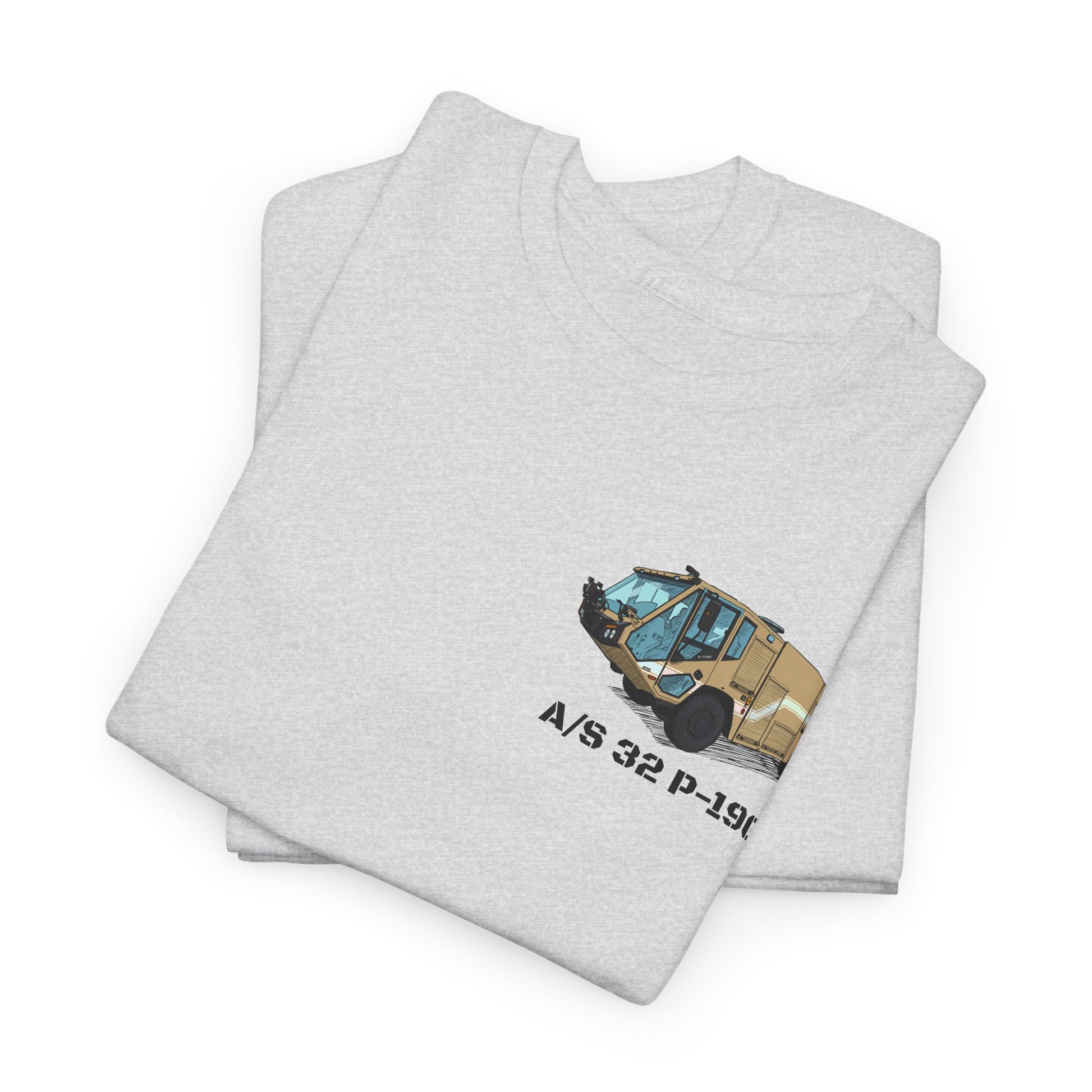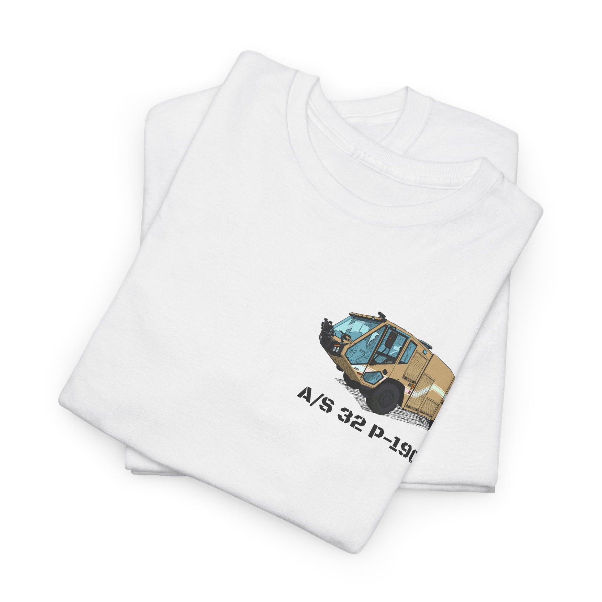 Celebrate today’s generation of crash fire rescue capability with this A/S 32 P-19C fundraiser tee featuring stylized artwork that matches the Hawaiian shirts and coffee mugs in the collection. The P-19C is the newest evolution of the P-19 series and is designed to provide modern firefighting capability in a transportable platform suitable for a wide range of airfield environments. This exclusive design highlights the bold and recognizable P-19C silhouette in a clean, modern layout that appeals to Fire Protection Specialists, veterans, collectors and anyone who appreciates the progression of ARFF vehicles. Created specifically for this limited-time fundraiser collection, this tee delivers pride, purpose and a meaningful way to give back.