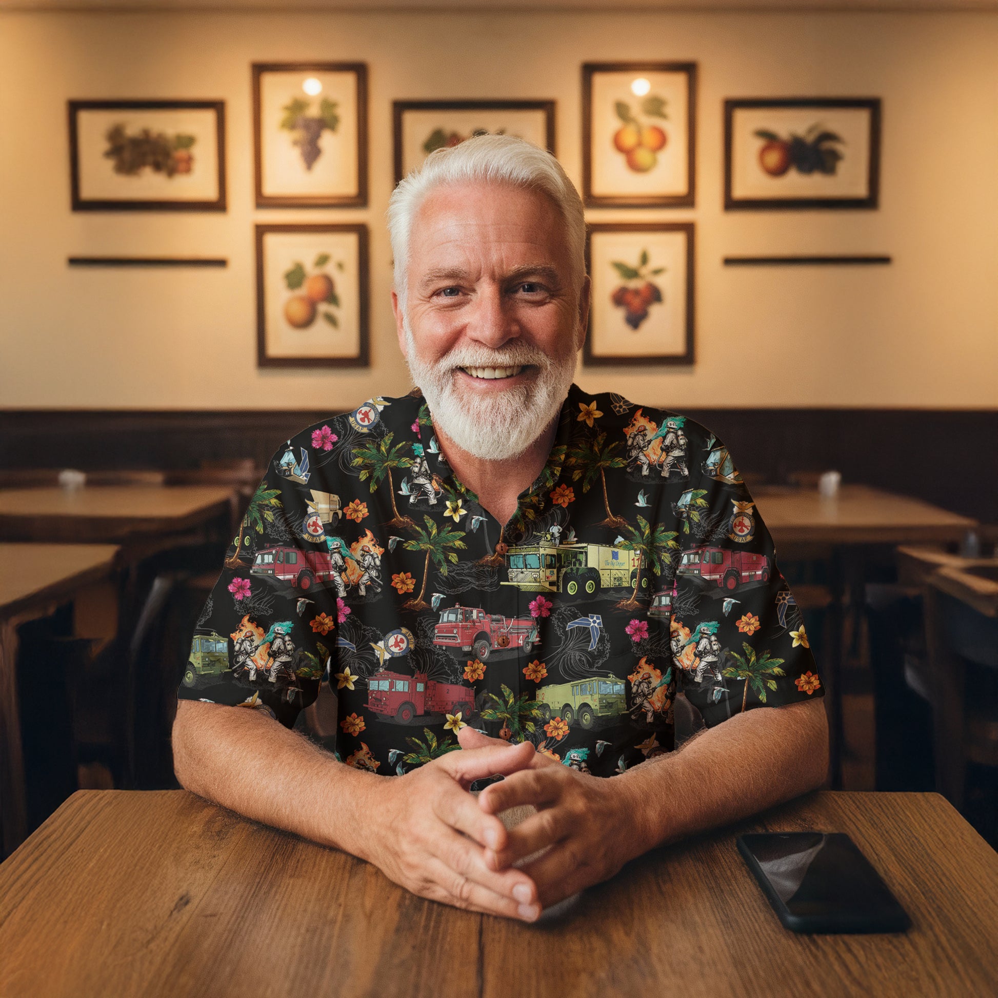 This exclusive Hawaiian shirt is part of the Island Vibes For Life and Air Force Firefighters Fundraiser, created on behalf of the Air Force Firefighters Facebook community.