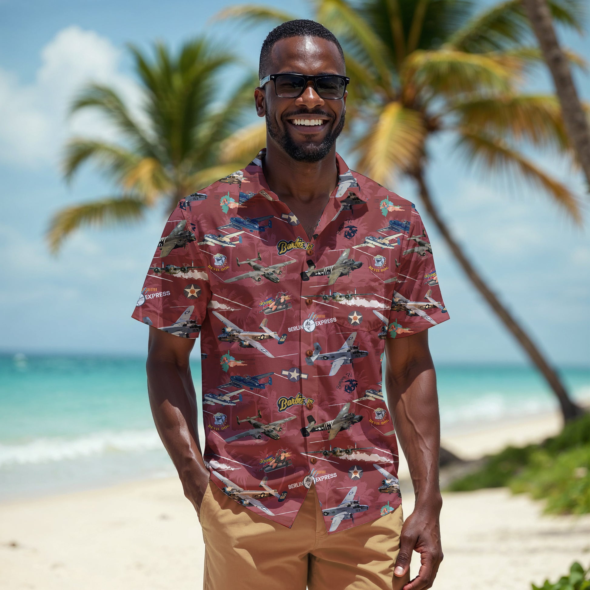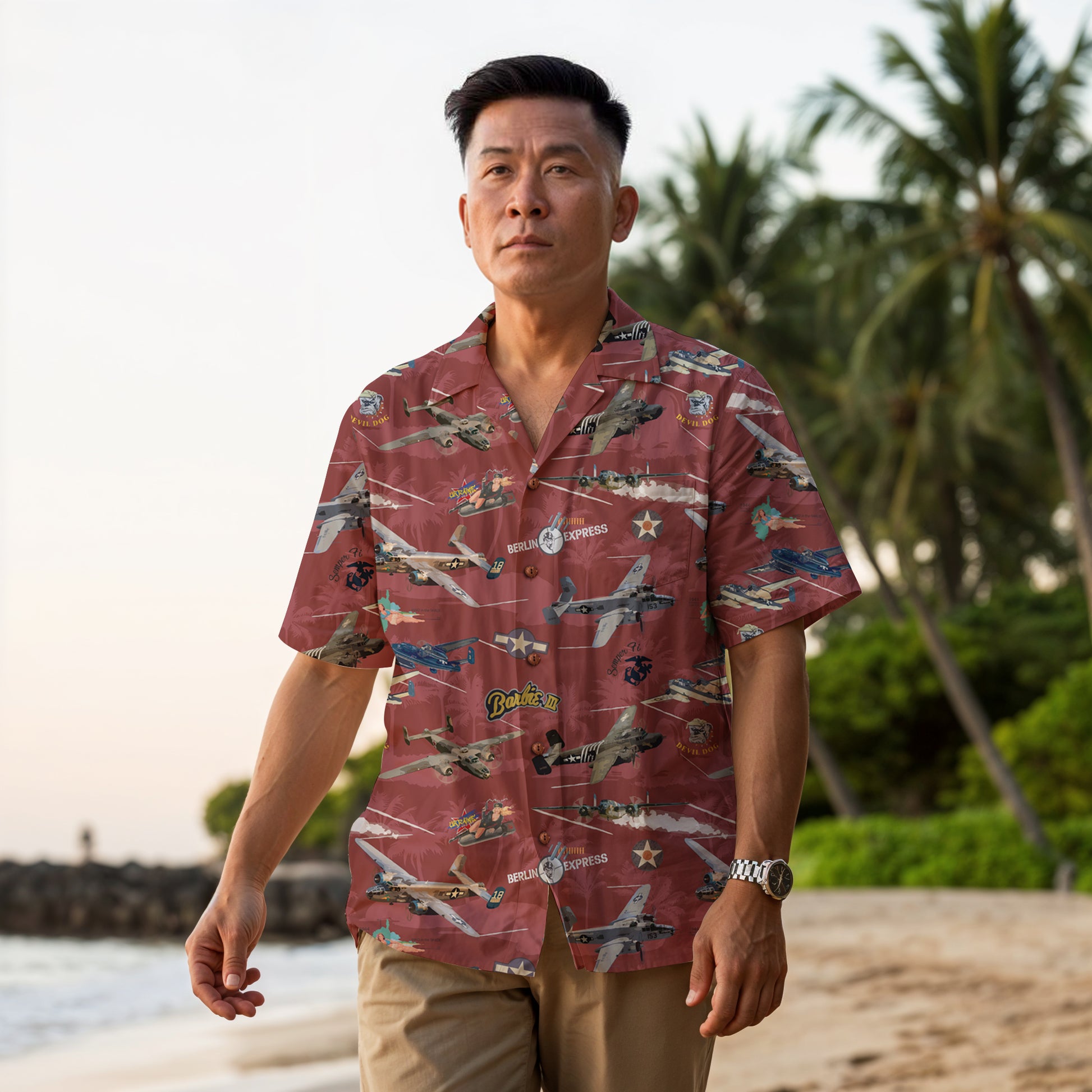 "B-25 Mitchell Tribute" Hawaiian Shirt 100% Cotton - Red