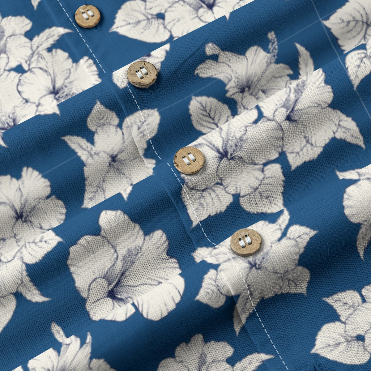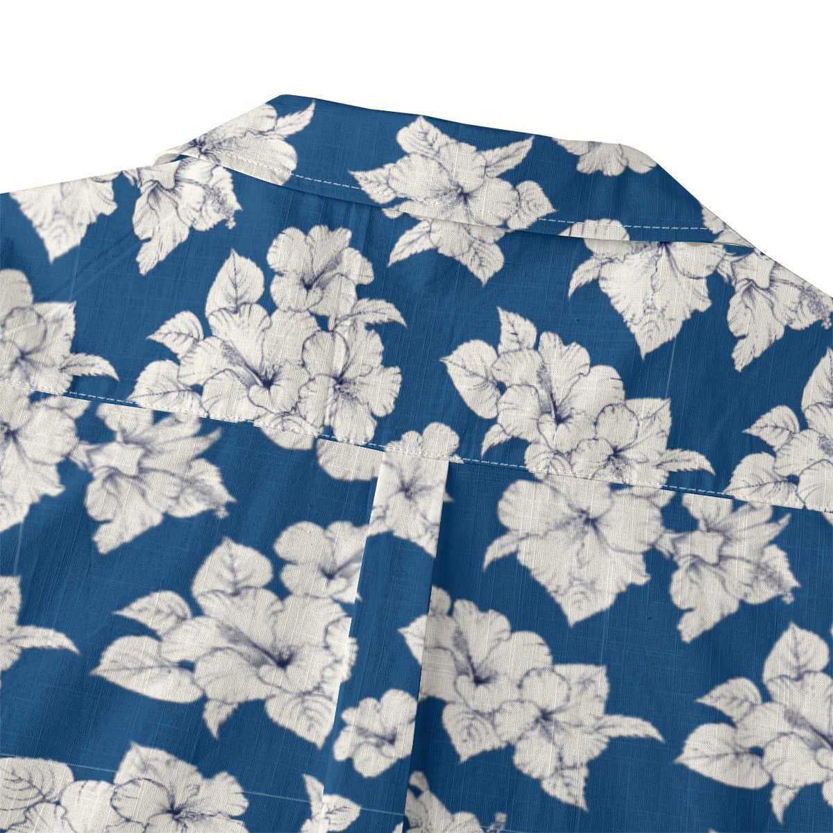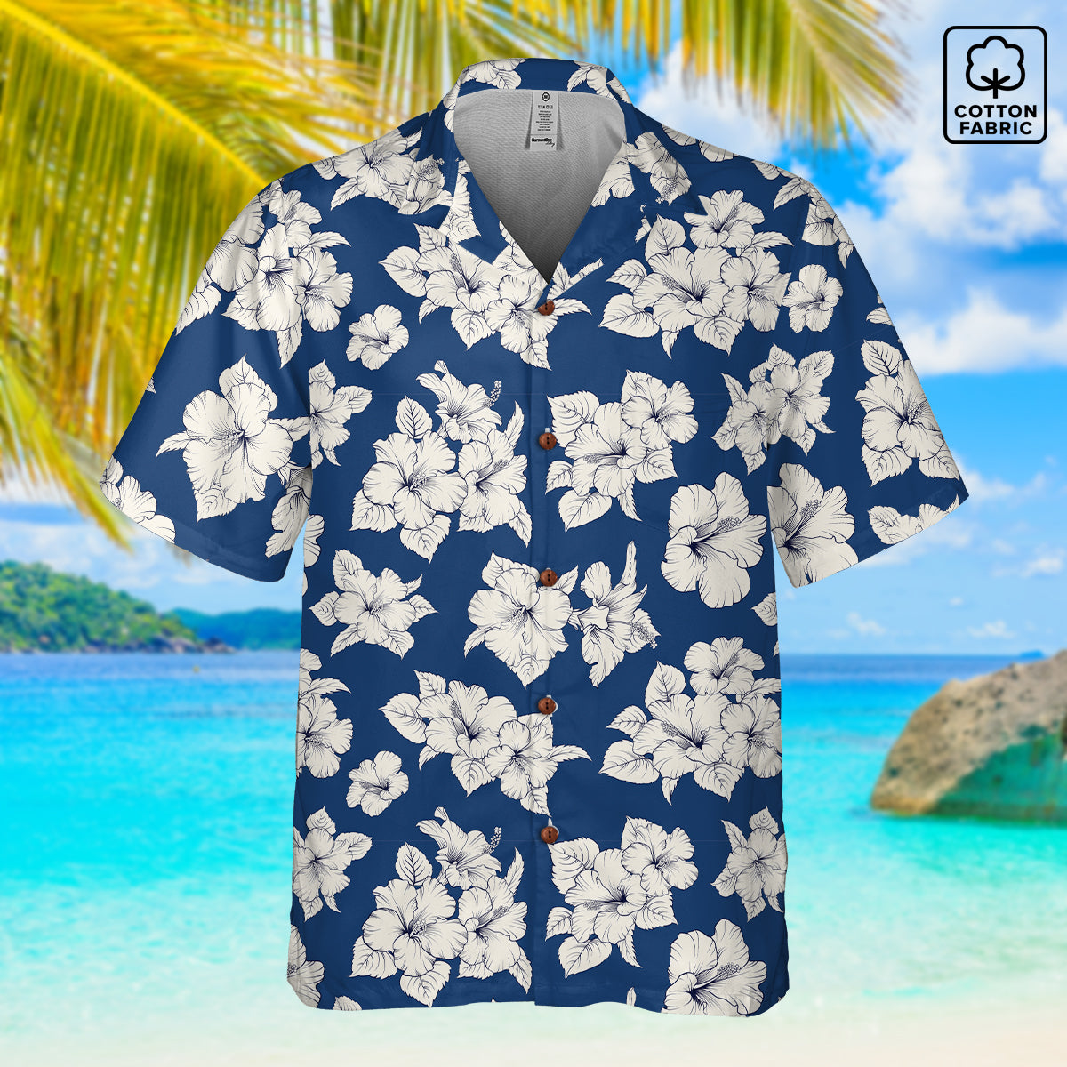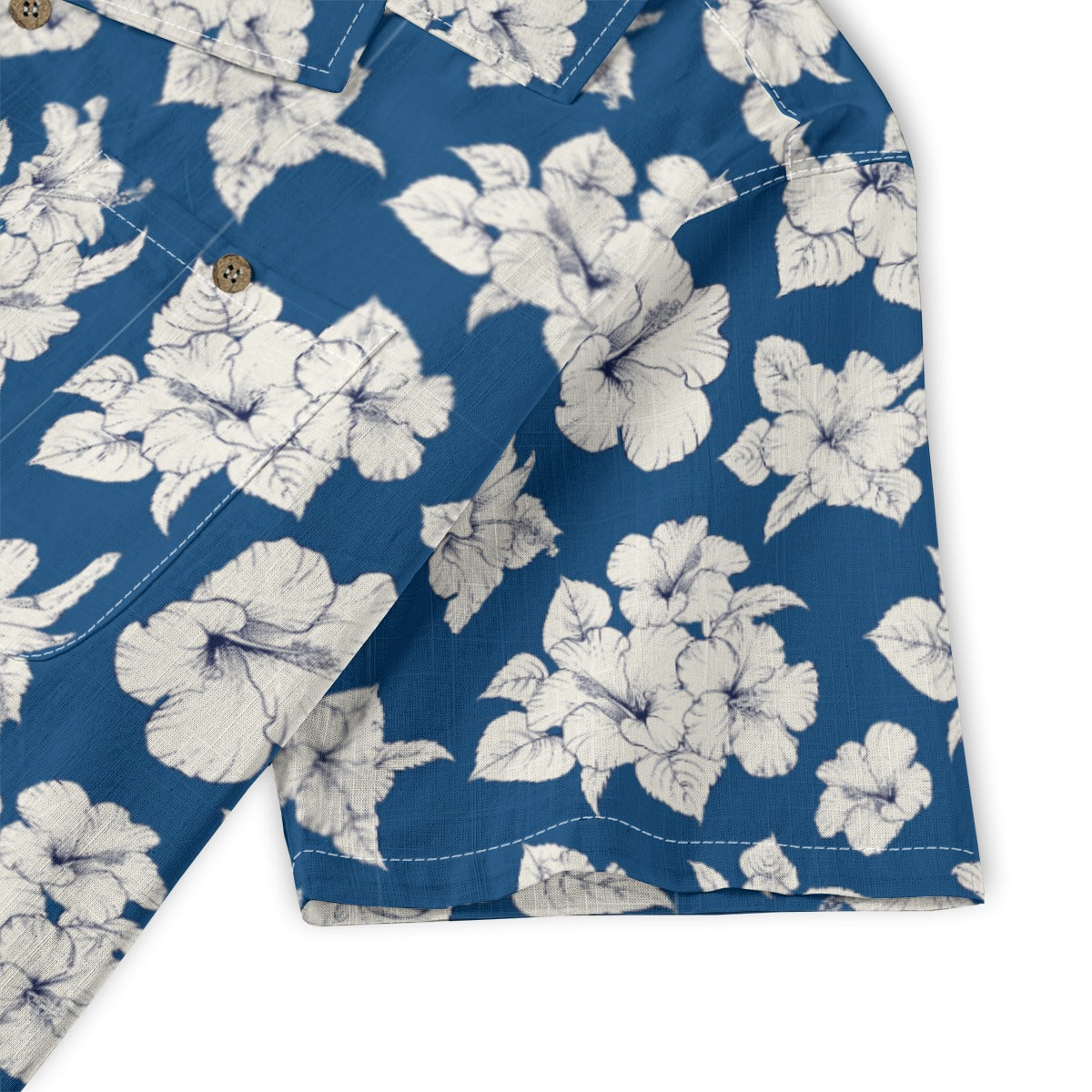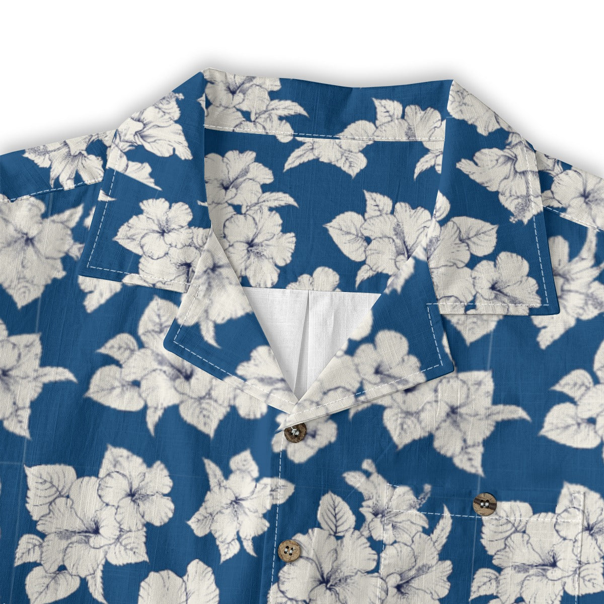 "Classic White Hibiscus" Hawaiian Shirt - 100% Cotton