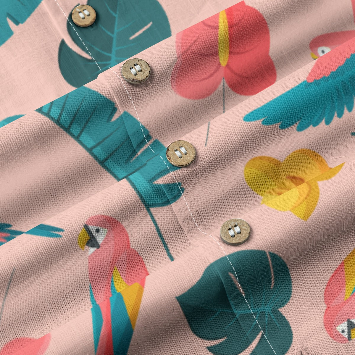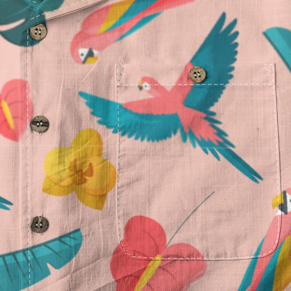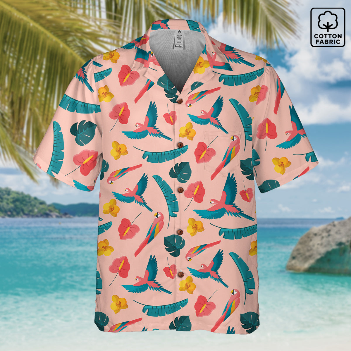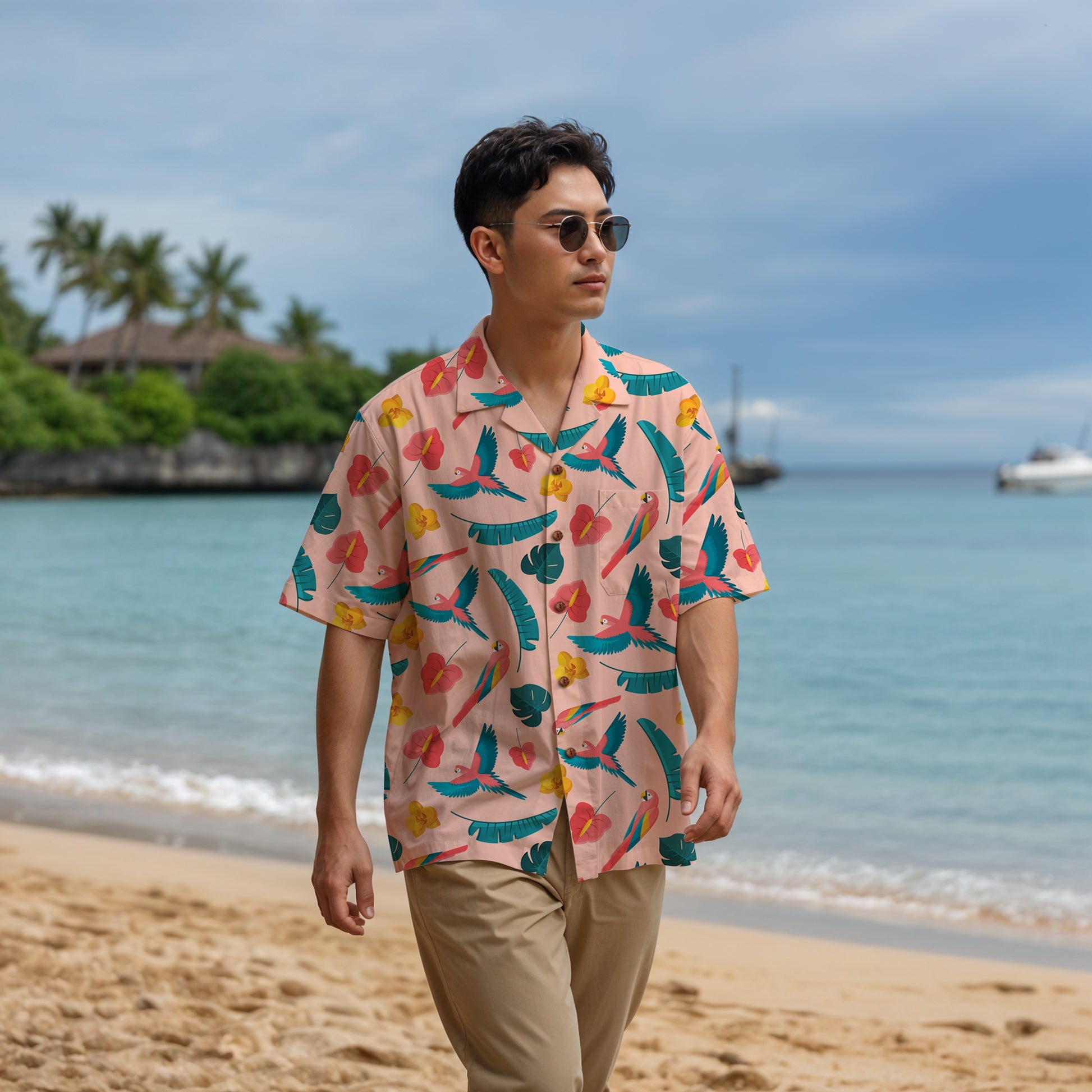 🦜 Unique Design: Adorned with vibrant tropical patterns, this shirt embodies the untamed spirit of the islands. It's more than just clothing; it's a wearable adventure that brings the exotic allure of the island scene to your wardrobe.
