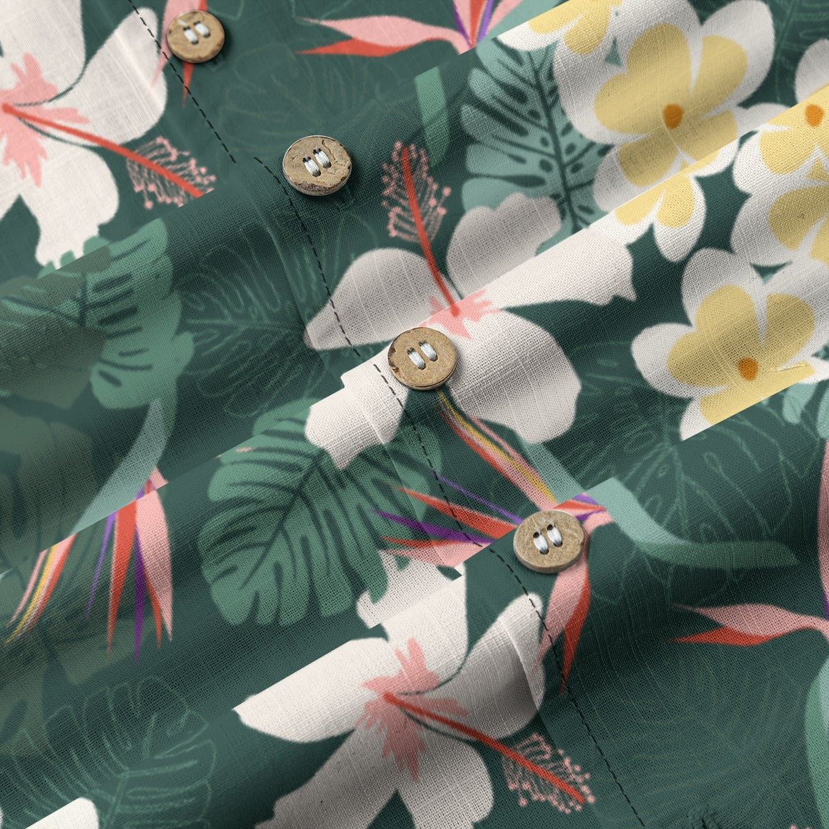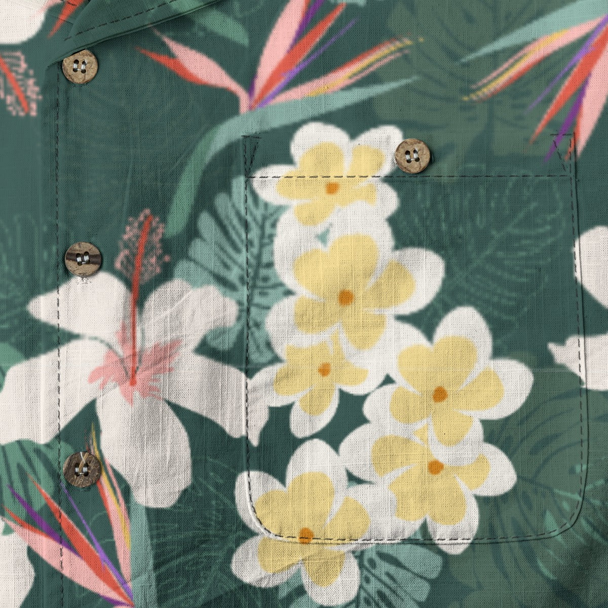 🦜 Unique Design: Adorned with vibrant tropical patterns, this shirt embodies the untamed spirit of the islands. It's more than just clothing; it's a wearable adventure that brings the exotic allure of the island scene to your wardrobe.