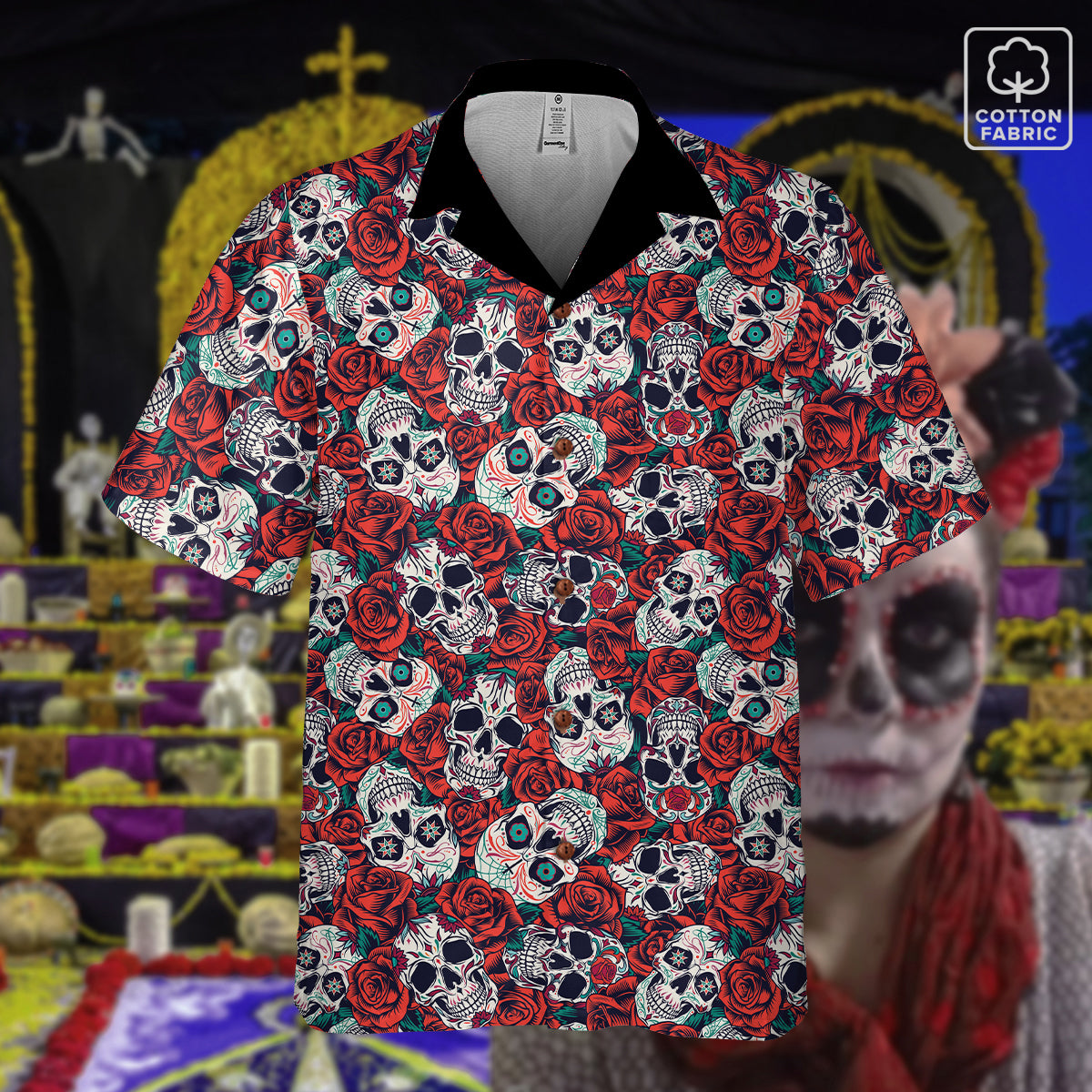 "Dia De Muertos in Roses" Cotton Celebration Shirt