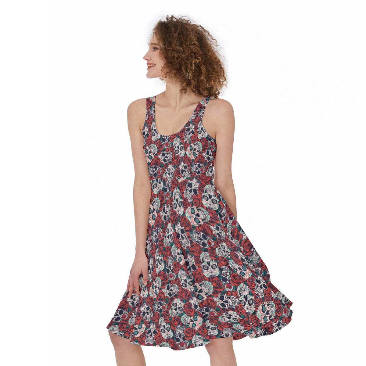 "Dia de Muertos in Roses" Women's Sleeveless Dress