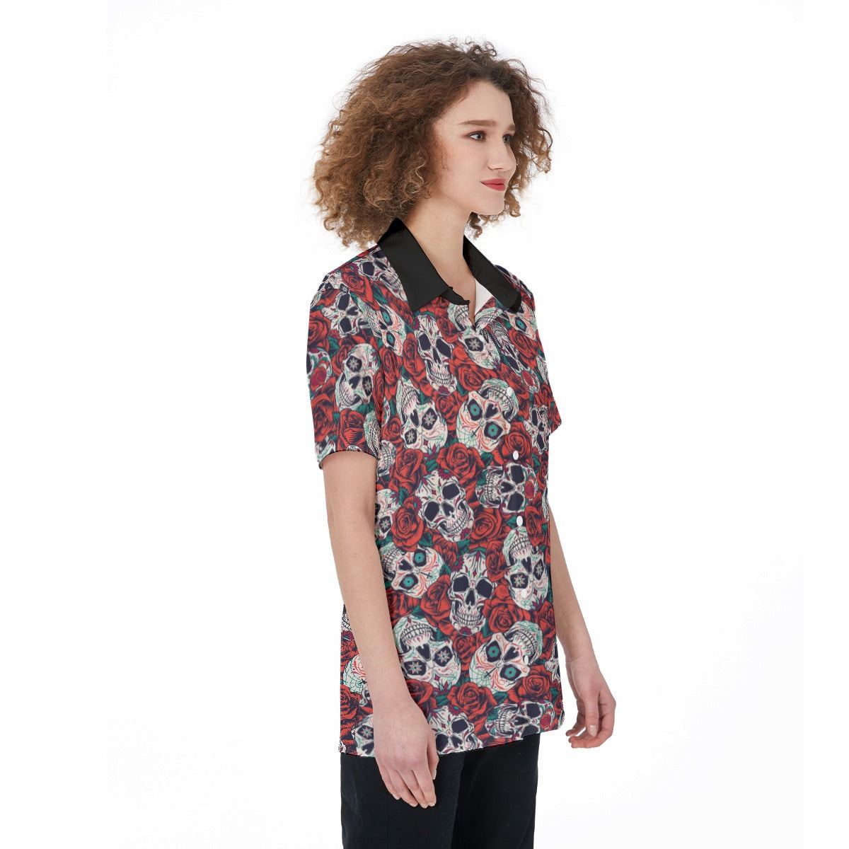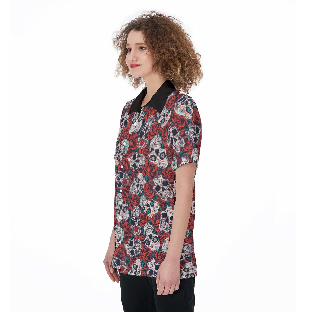 "Dia de Muertos in Roses" Women's Button-Up Shirt