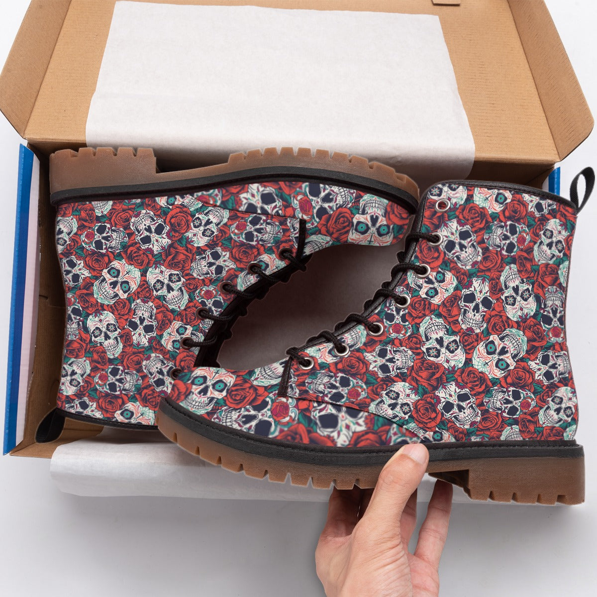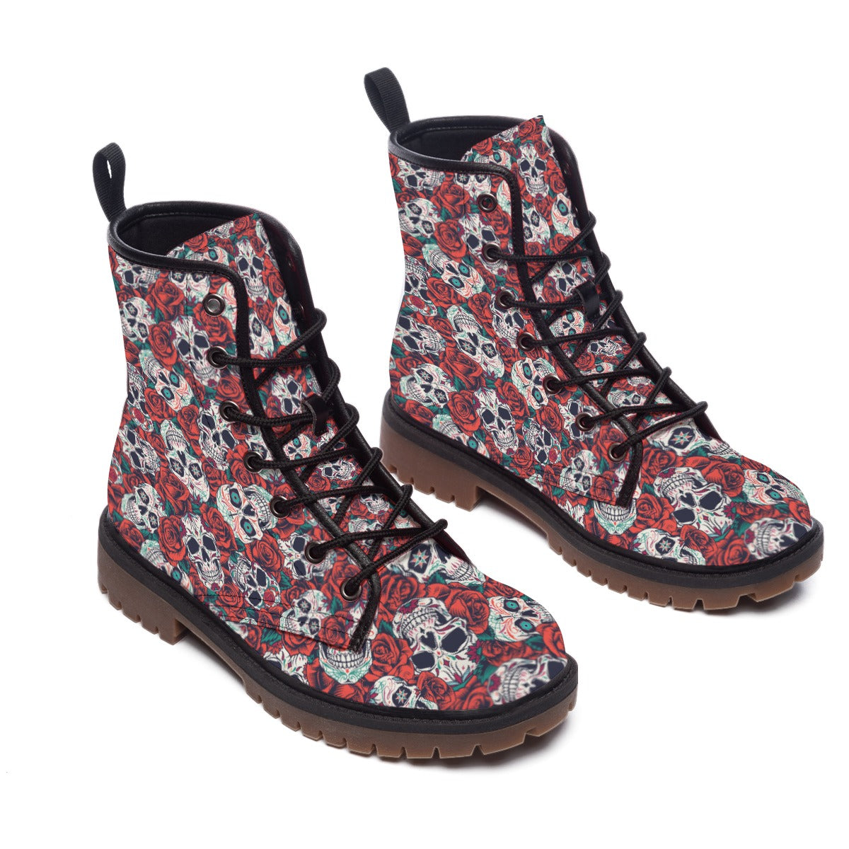 "Dia de Muertos in Roses" Women's Martin Short Boots