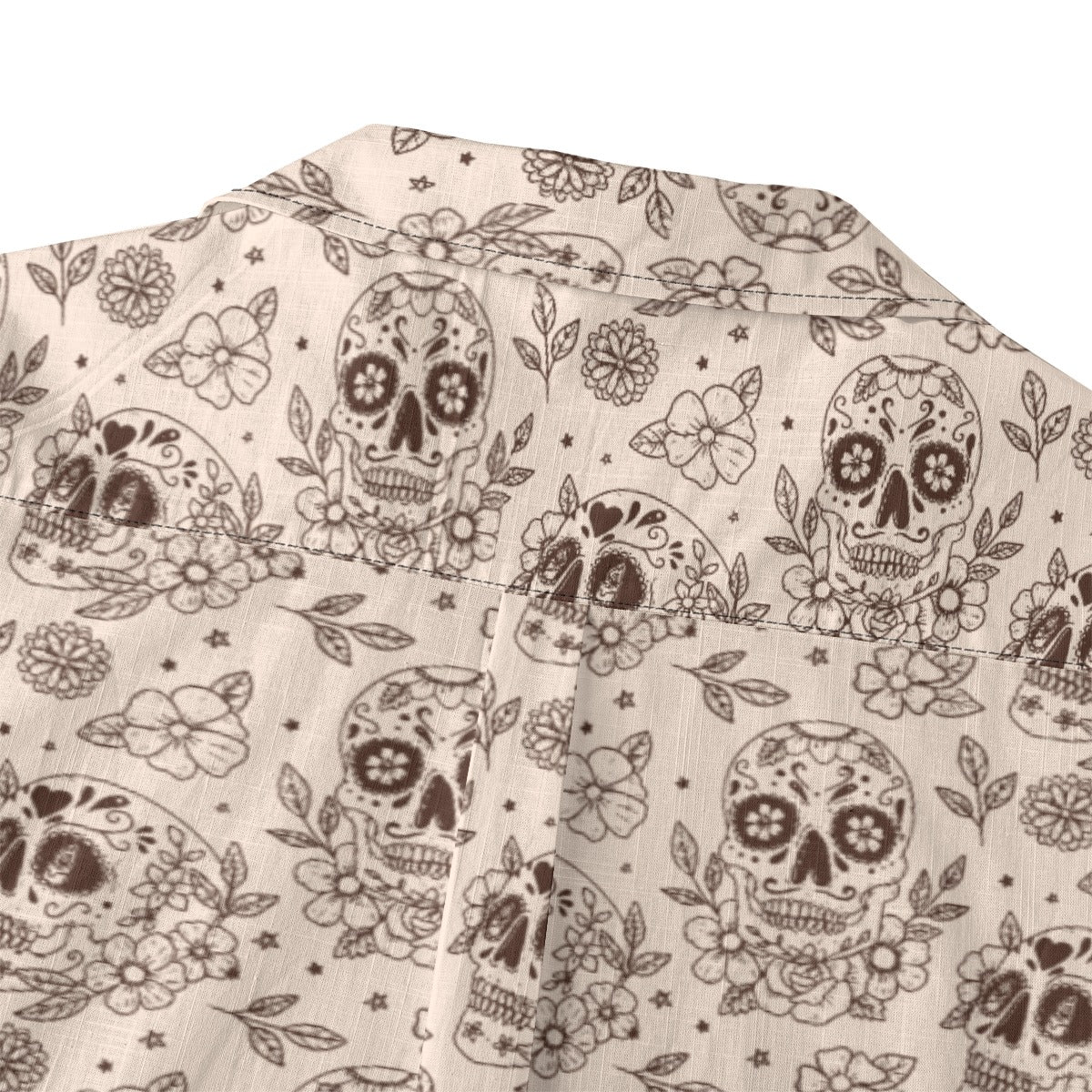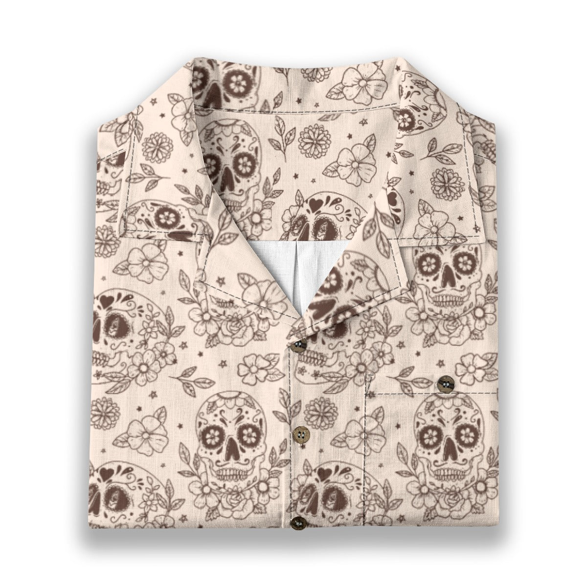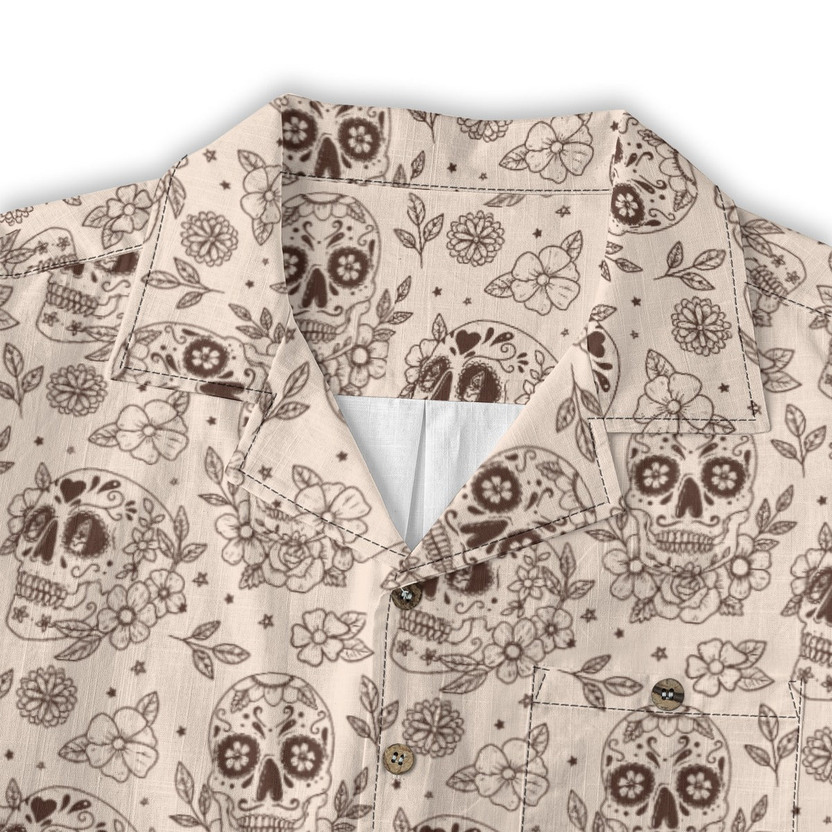 Camp Collar: Wide, open collar that lays flat, characteristic of classic Hawaiian shirts.