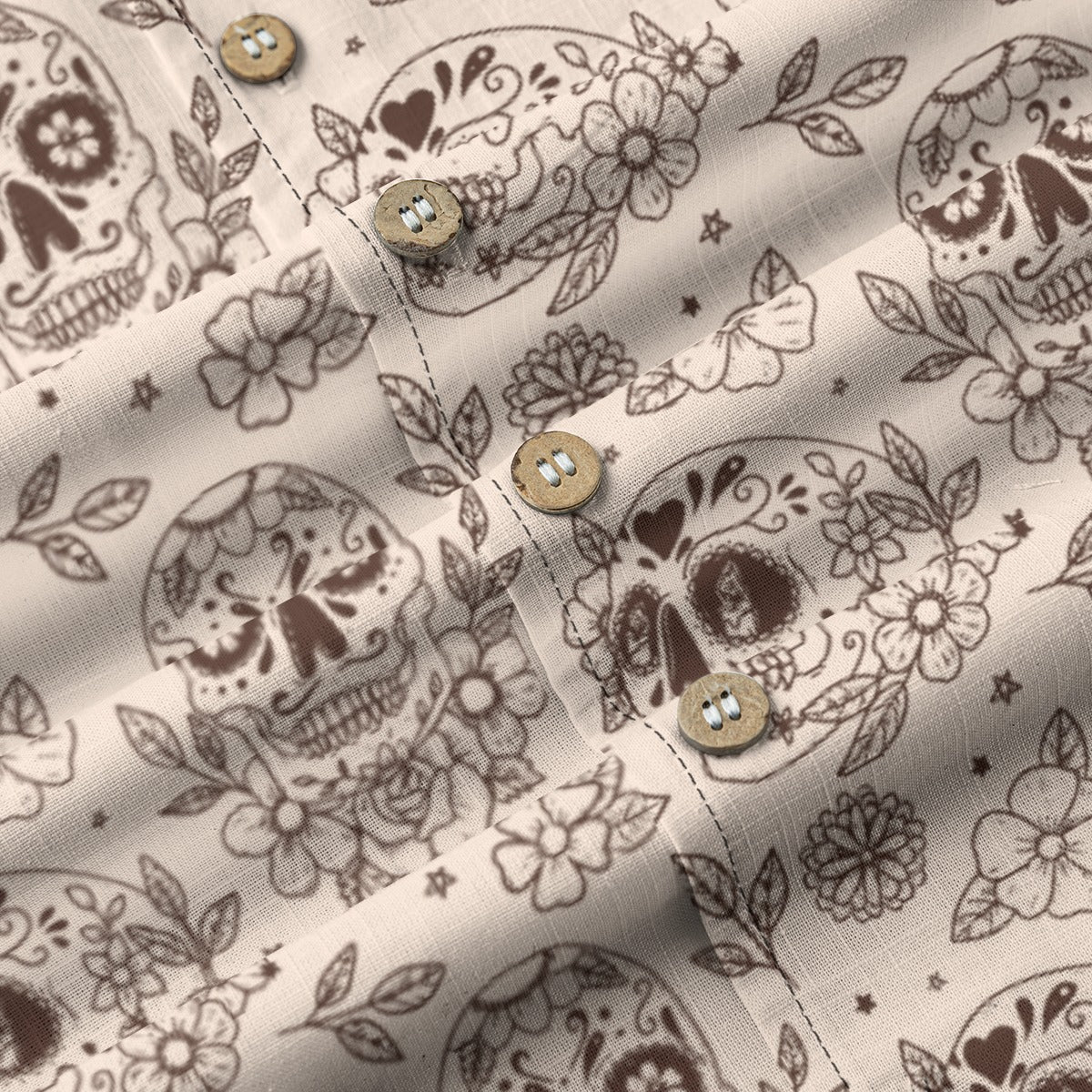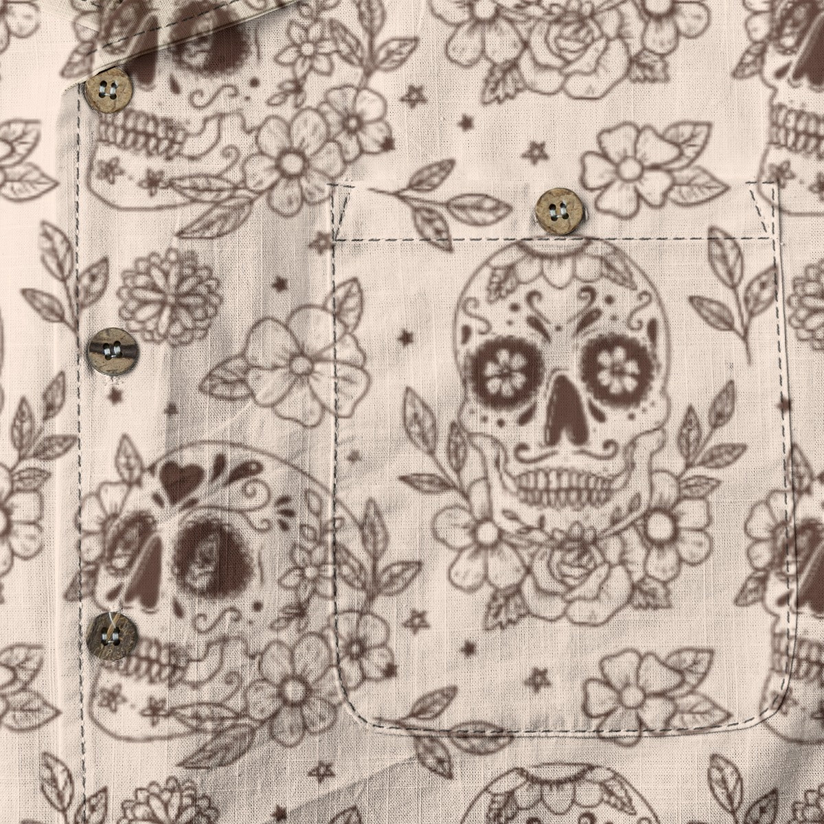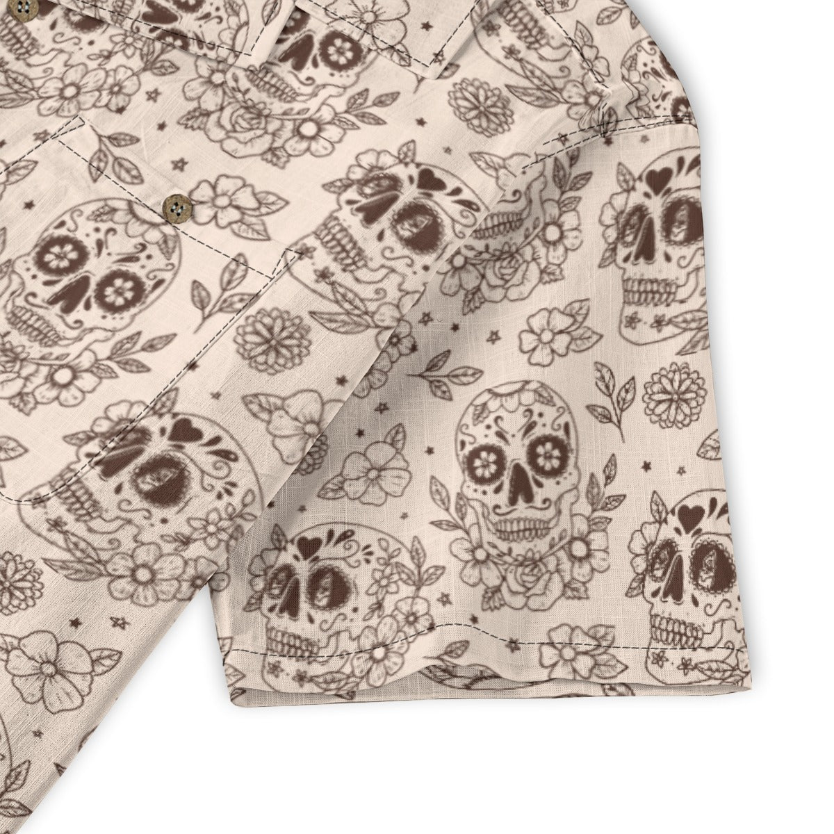 Camp Collar: Wide, open collar that lays flat, characteristic of classic Hawaiian shirts.
