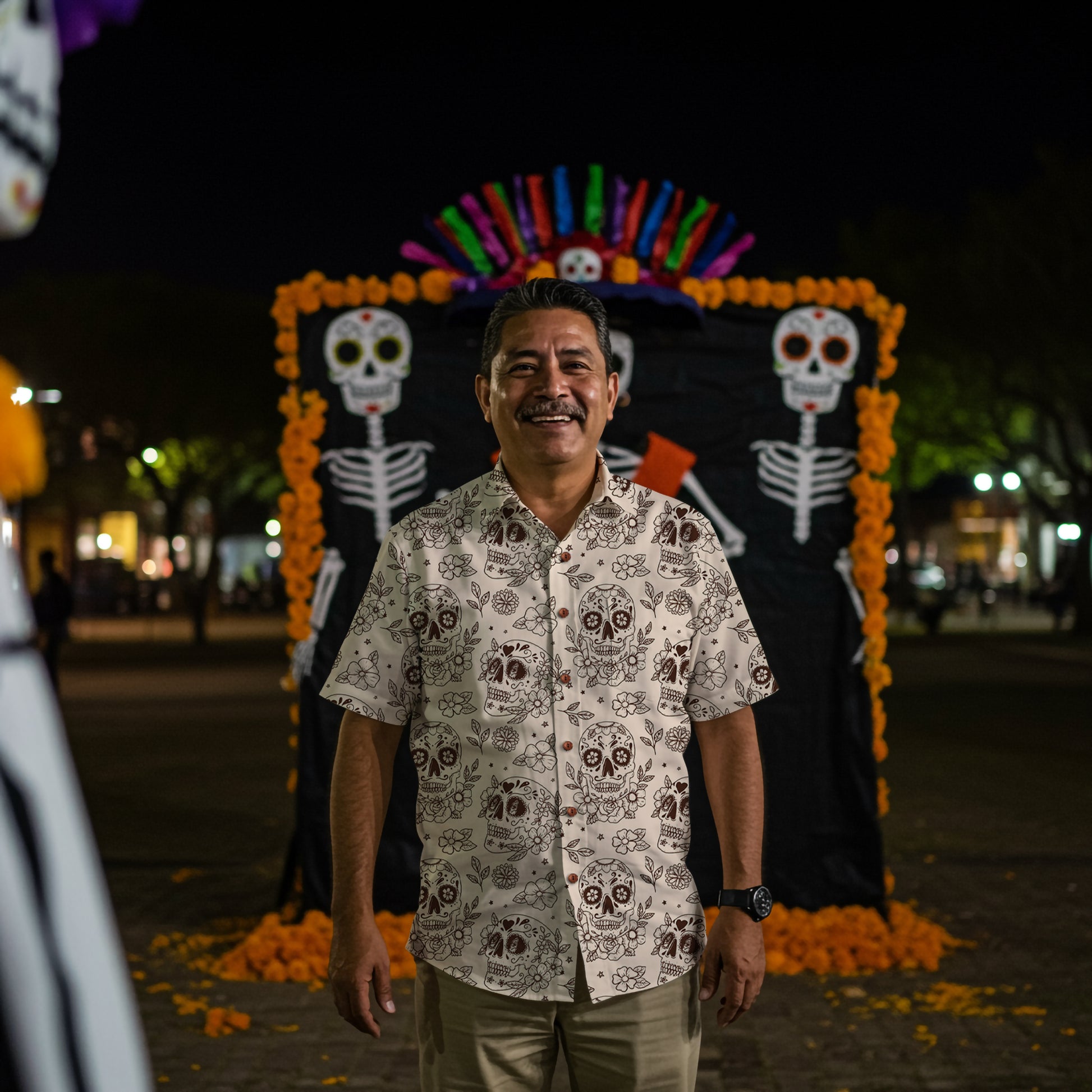 Celebrate life, death, and the eternal cycle with our Día de los Muertos print. Rooted in traditions over 3,000 years old, it honors death as a joyful reunion with loved ones. Sugar skulls, marigolds, roses, hibiscus, and butterflies symbolize memory, beauty, and returning spirits. A warm, candlelit palette evokes family altars and reminds us that love continues beyond life.