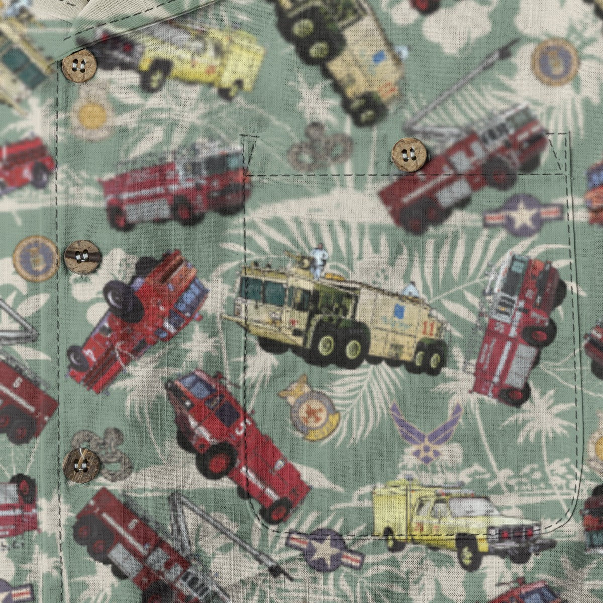 Hawaiian Shirt - "Chanute Era Crash Trucks" - Light Green 100% Cotton