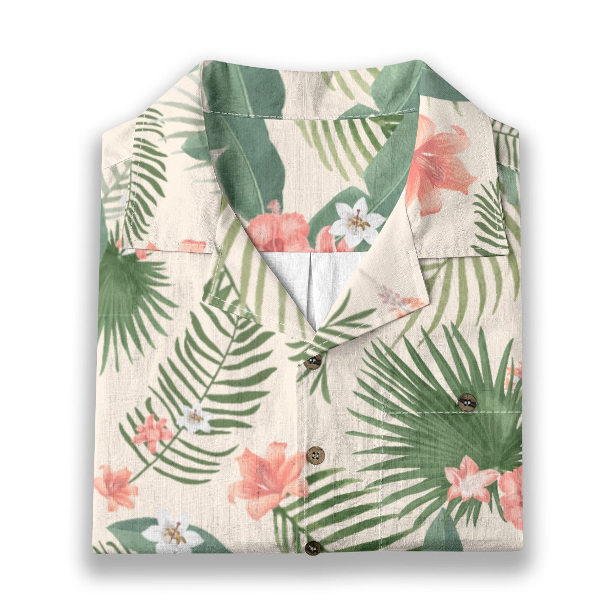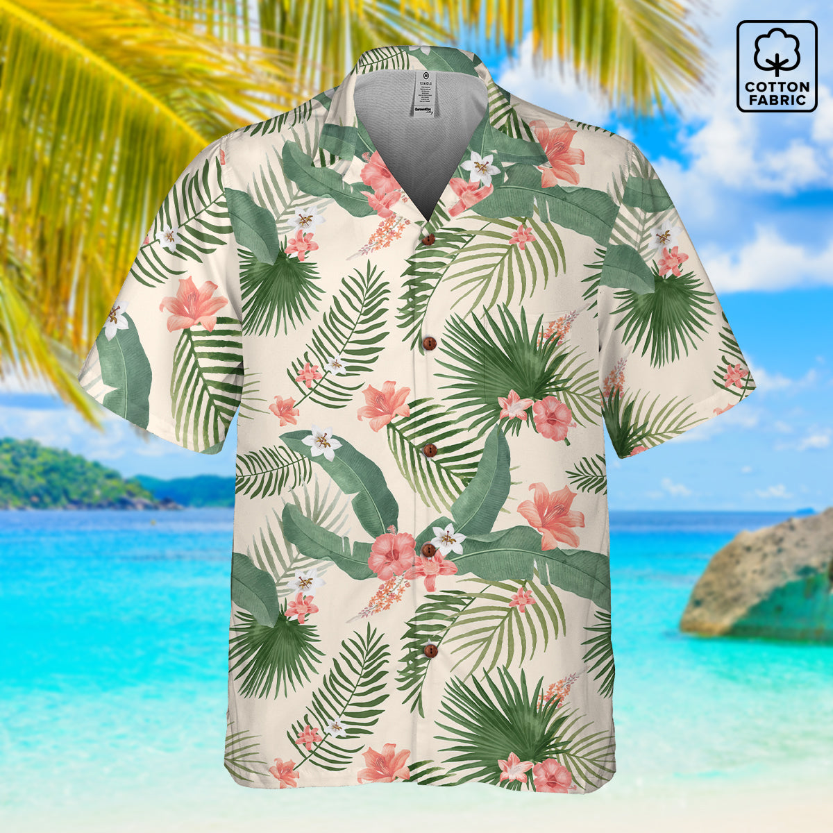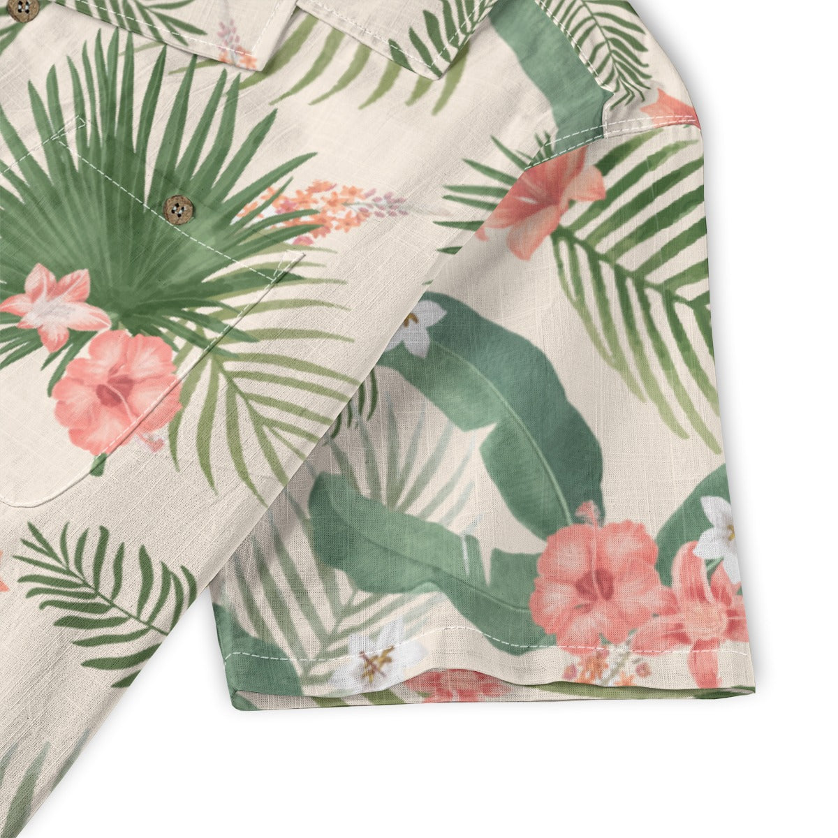 "Hibiscus Palm Oasis" Hawaiian Shirt in Cotton- Dive into the Tropical Paradise with our Exquisite Shirt! 🌺🌴