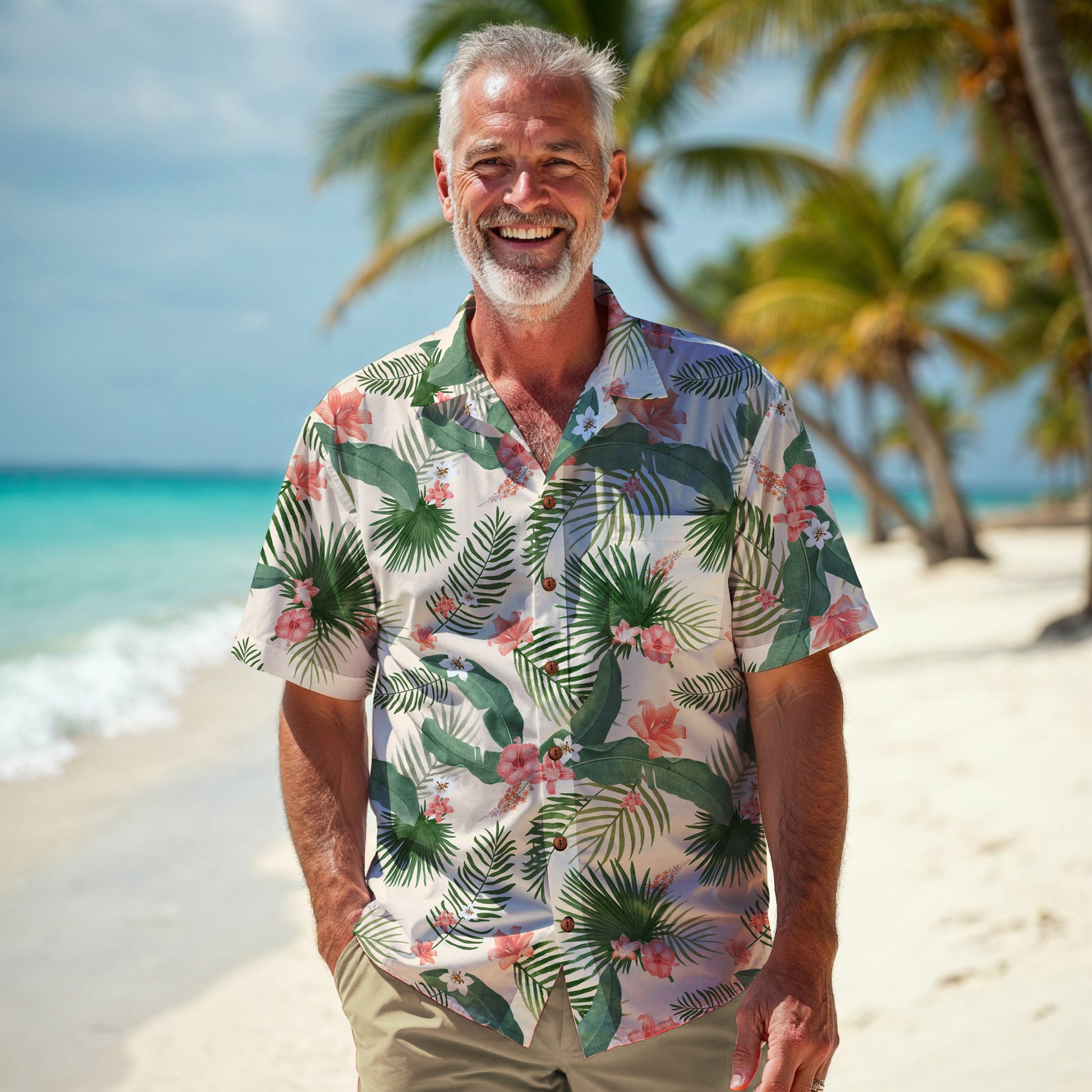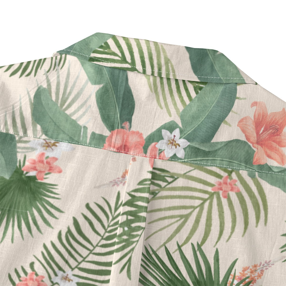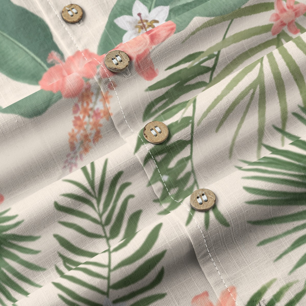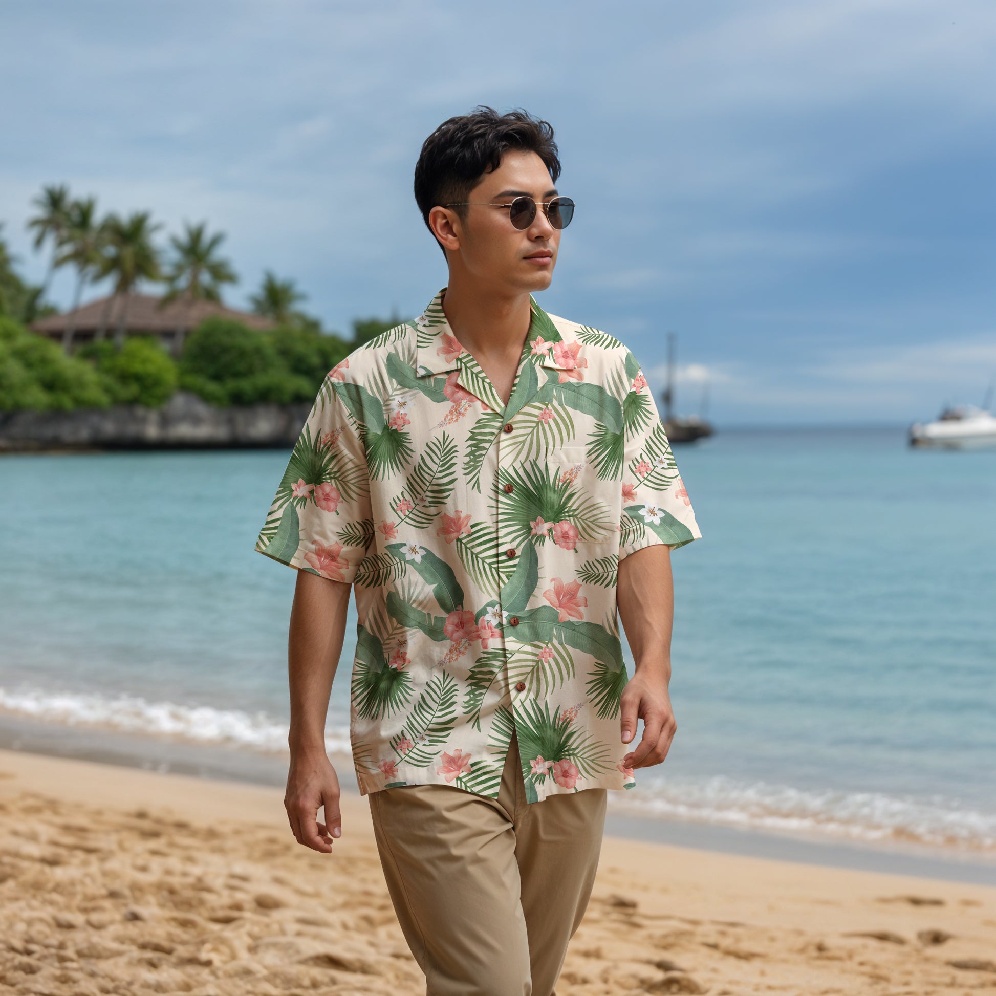 "Hibiscus Palm Oasis" Hawaiian Shirt in Cotton- Dive into the Tropical Paradise with our Exquisite Shirt! 🌺🌴