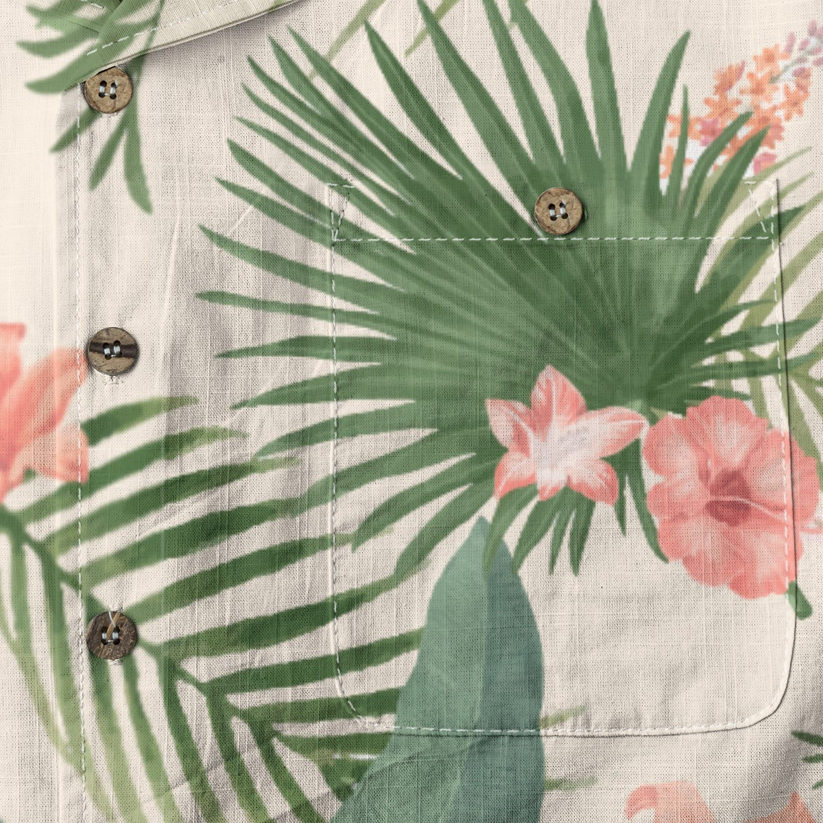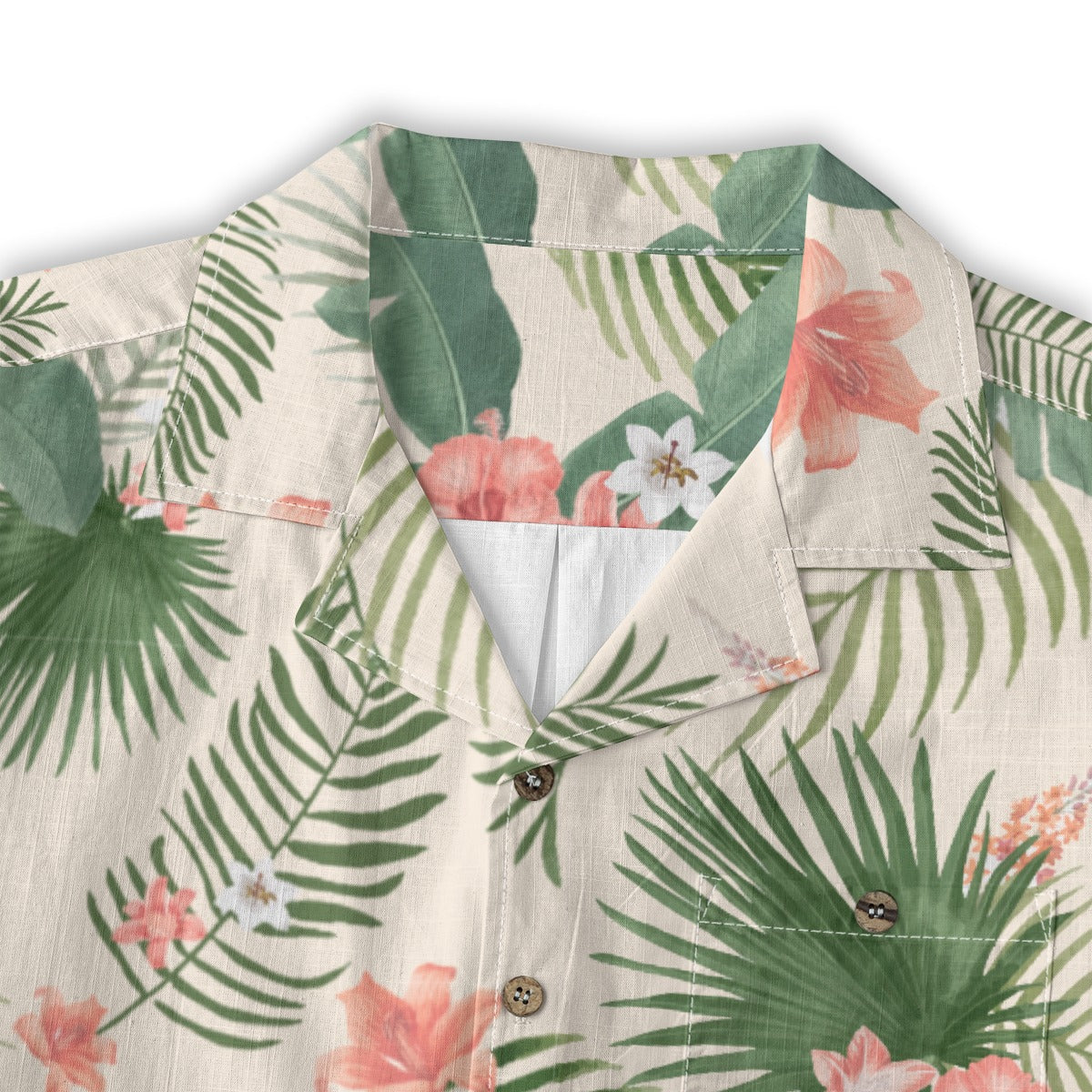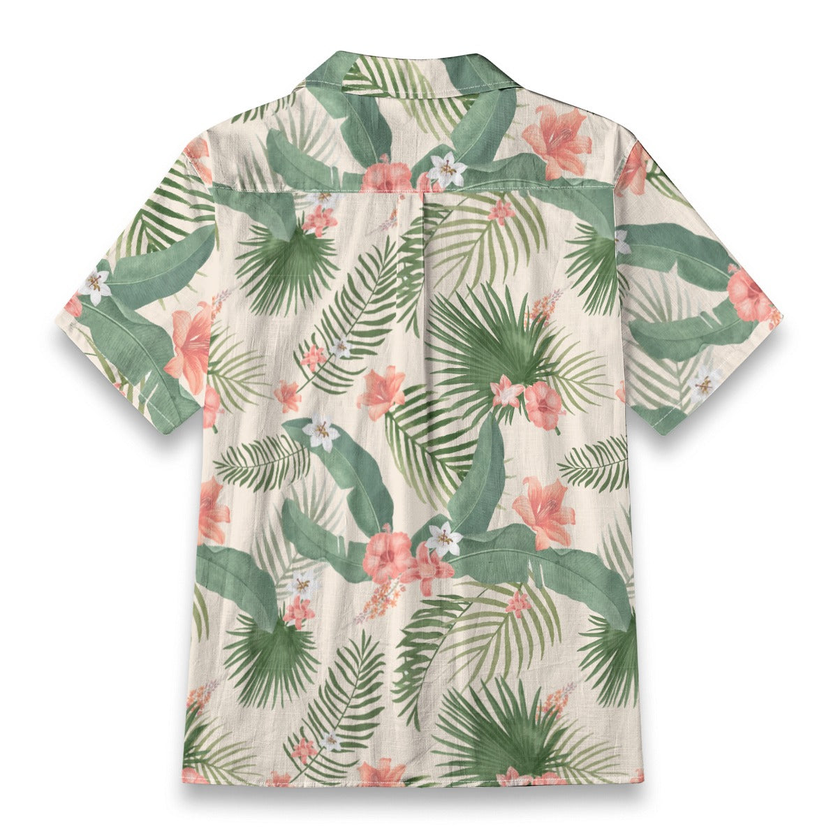 "Hibiscus Palm Oasis" Hawaiian Shirt - 100% Cotton