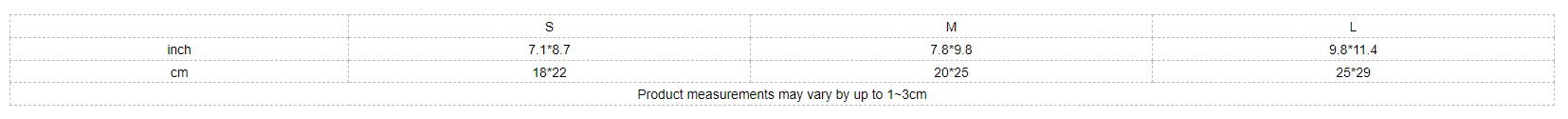 | inch | 7.1*8.7 | 7.8*9.8 | 9.8*11.4 |