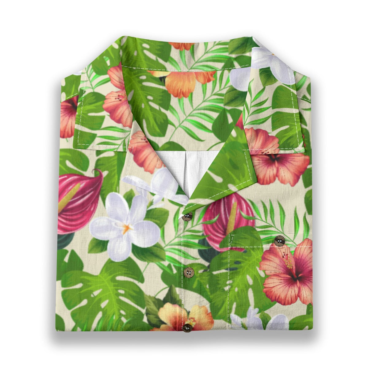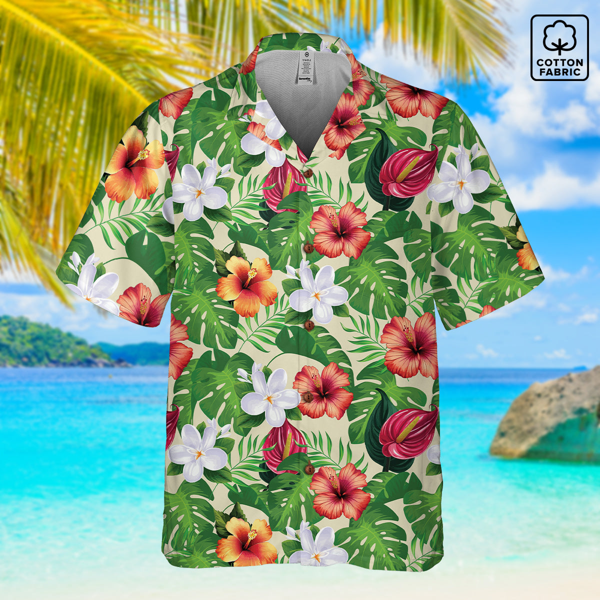"Jungle Odyssey Hues: Beach Vibes" Hawaiian Shirt in Cotton - Dive into Paradise with Our Exquisite Shirt! 🌺🏝️