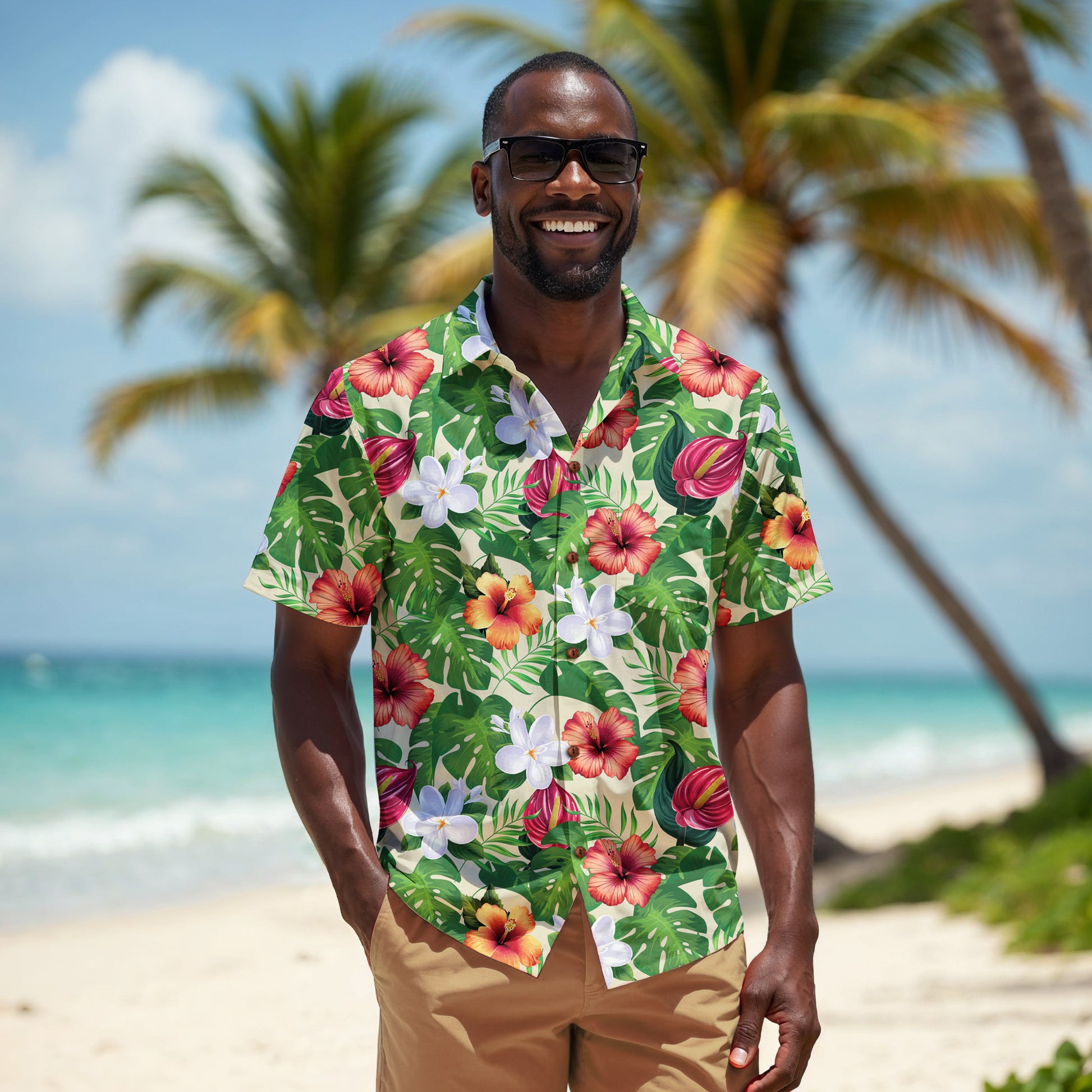 🦜 Unique Design: Adorned with vibrant tropical patterns, this shirt embodies the untamed spirit of the islands. It's more than just clothing; it's a wearable adventure that brings the exotic allure of the island scene to your wardrobe.