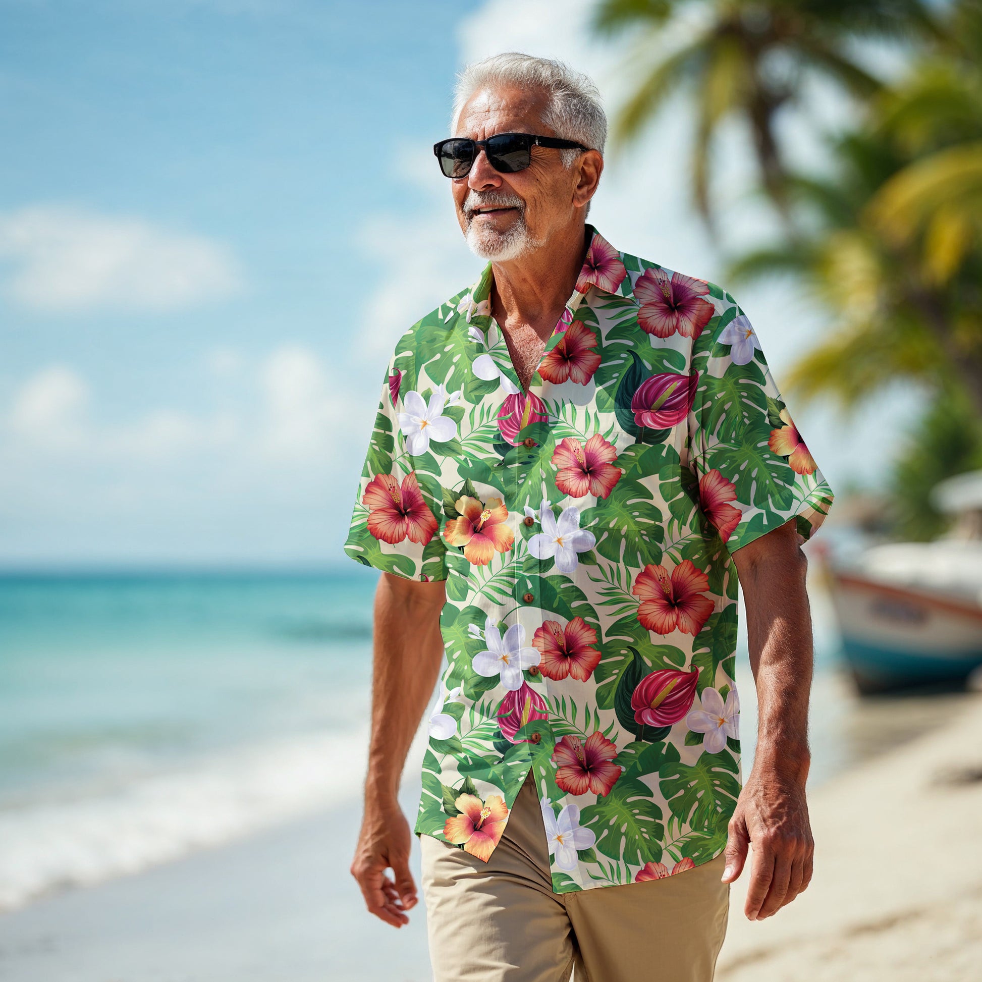 The Jungle Odyssey: Beach Vibes Hawaiian Shirt isn't just clothing; it's an escape. It's the lush greens, the vibrant florals, and the gentle rustling of palm leaves – all captured in a shirt. 🌴🌺🌞