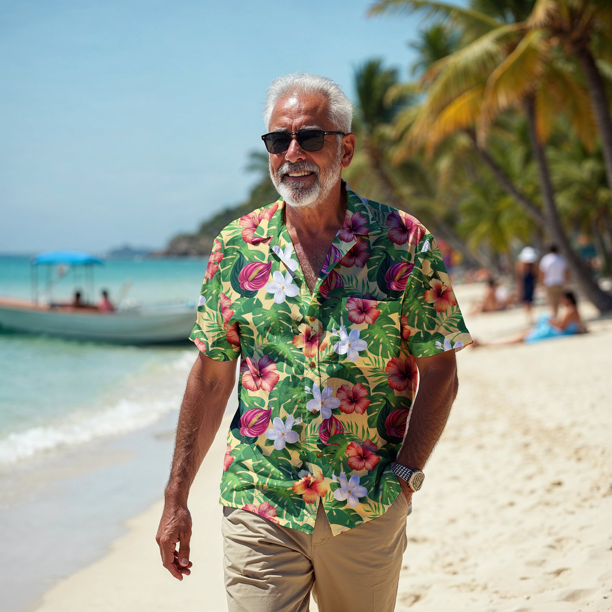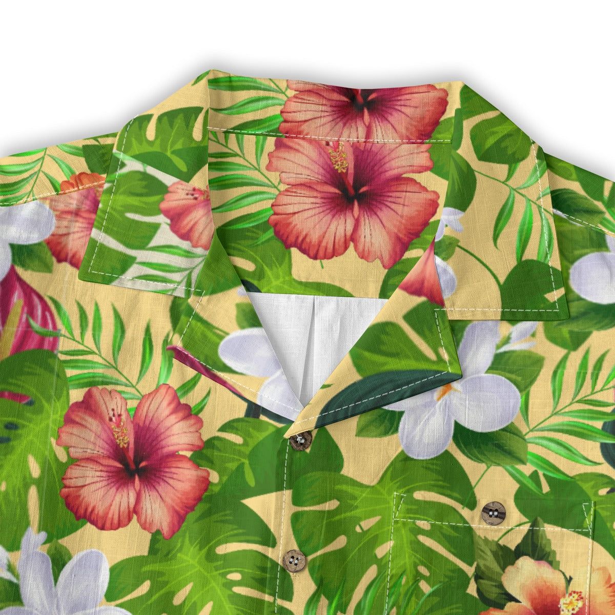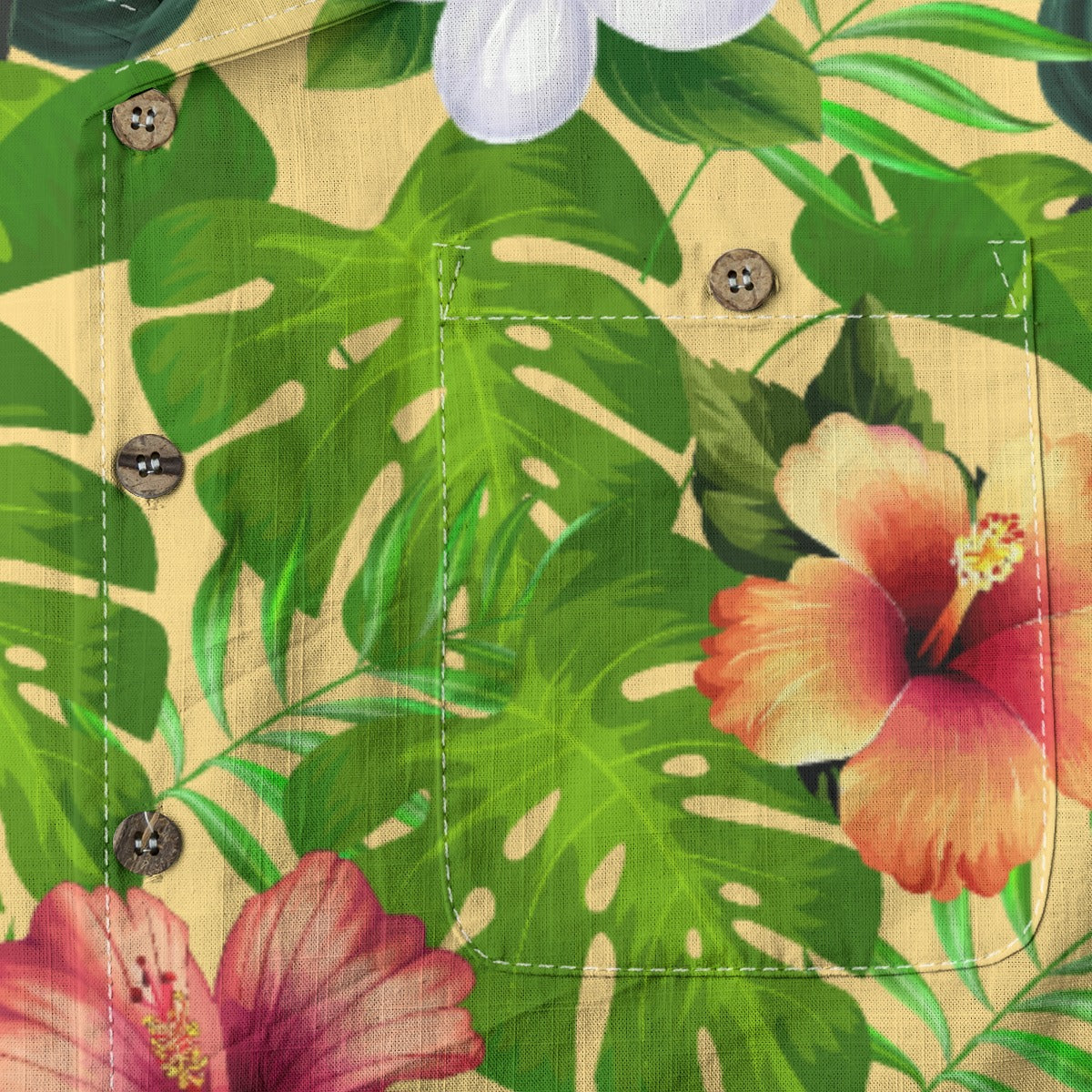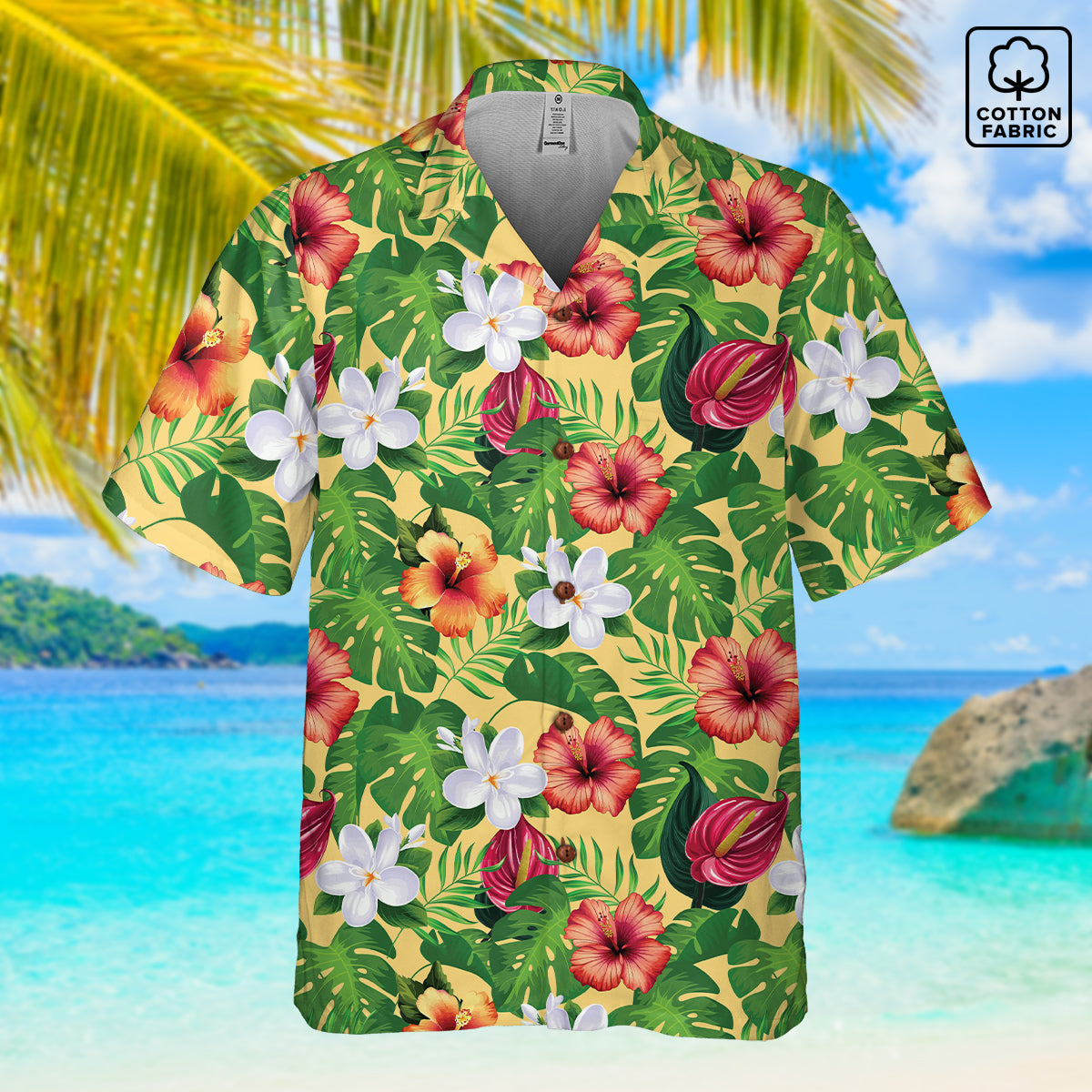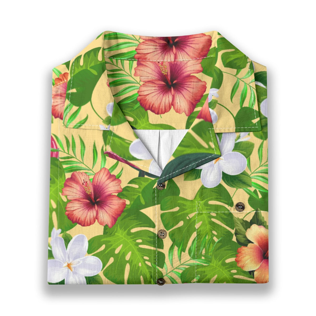 🦜 Unique Design: Adorned with vibrant tropical patterns, this shirt embodies the untamed spirit of the islands. It's more than just clothing; it's a wearable adventure that brings the exotic allure of the island scene to your wardrobe.