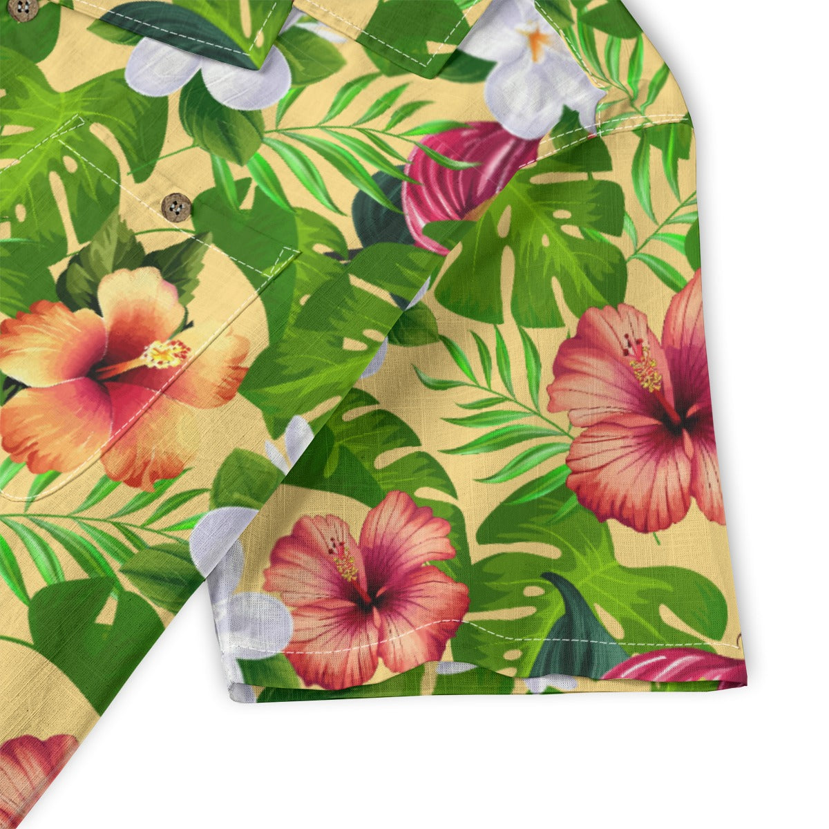 "Jungle Odyssey Hues: Golden Sun" Hawaiian Shirt in Cotton - Dive into Paradise with Our Exquisite Shirt! 🌺🏝️