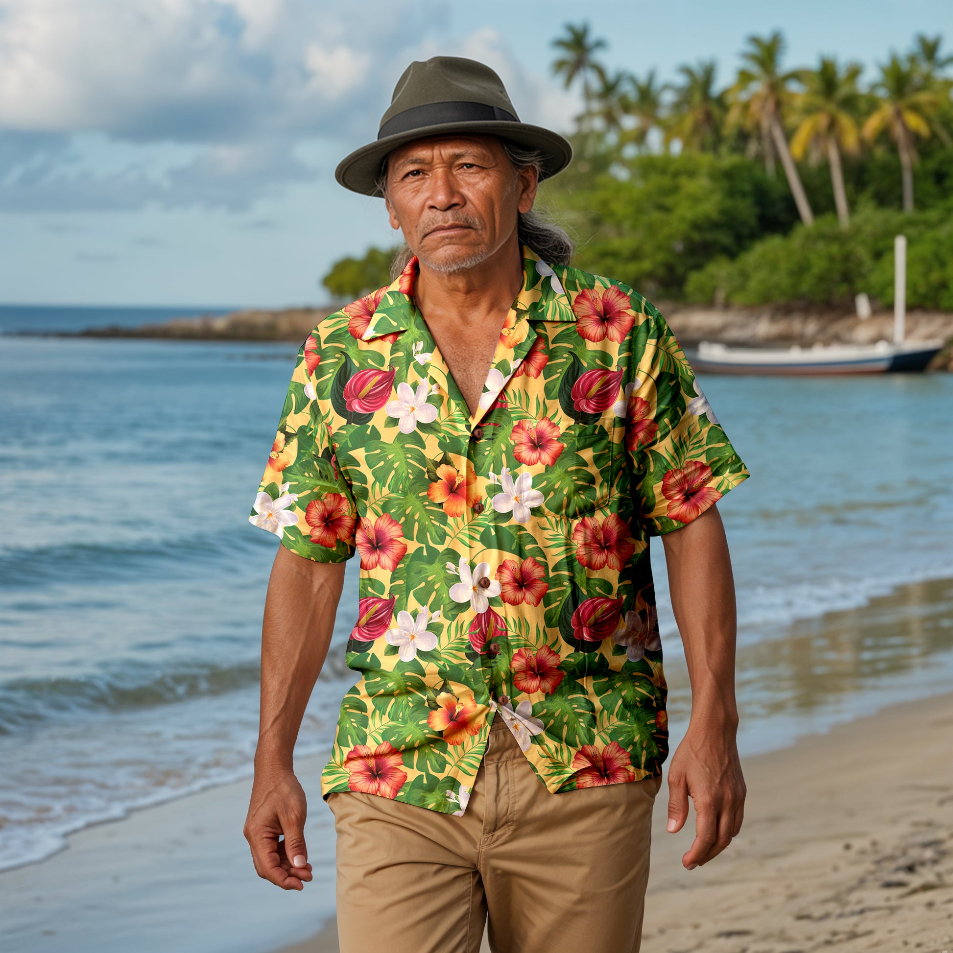 🏝️ Roman Collar: The Roman collar adds a touch of elegance to your casual look, ensuring you stand out in any Hawaiian setting.