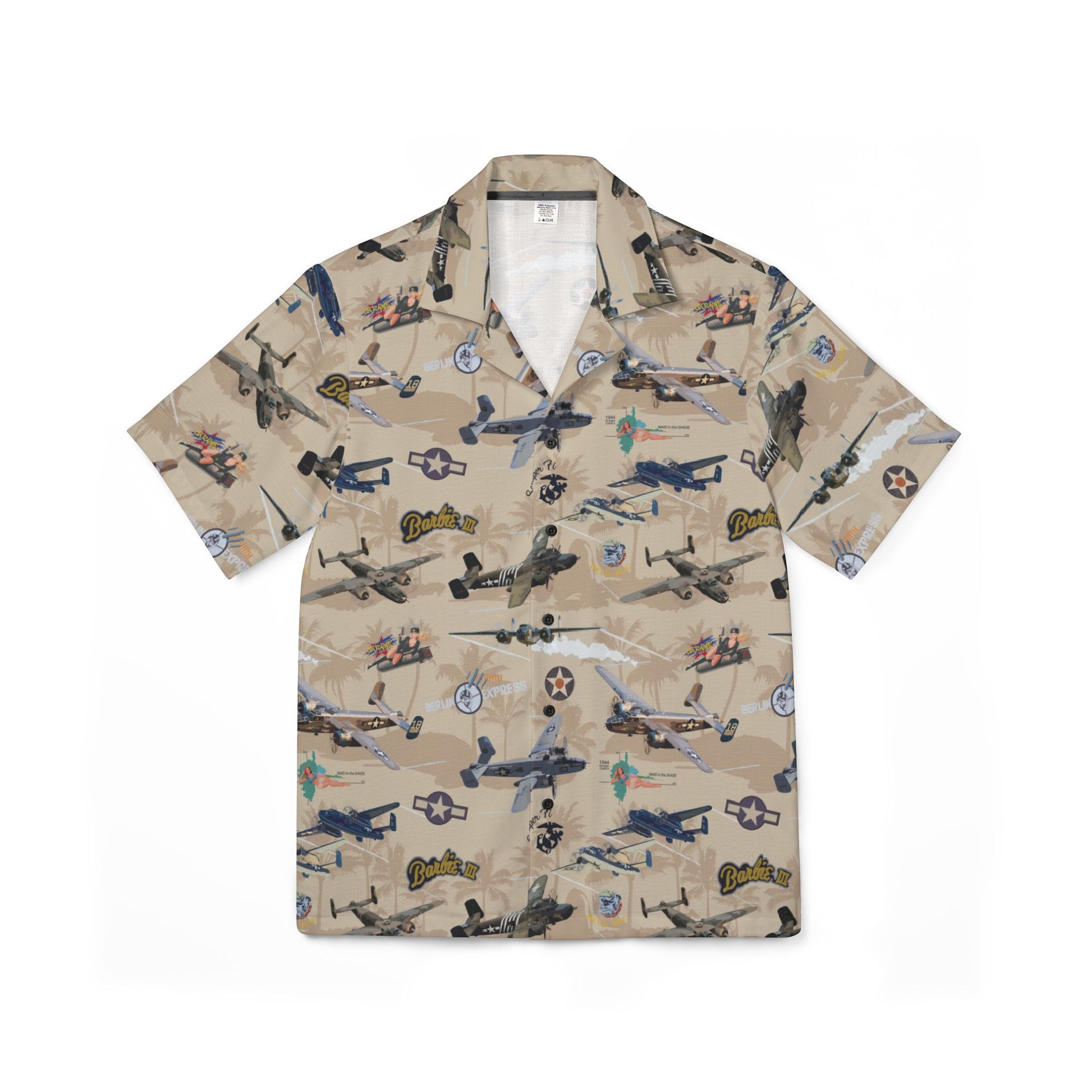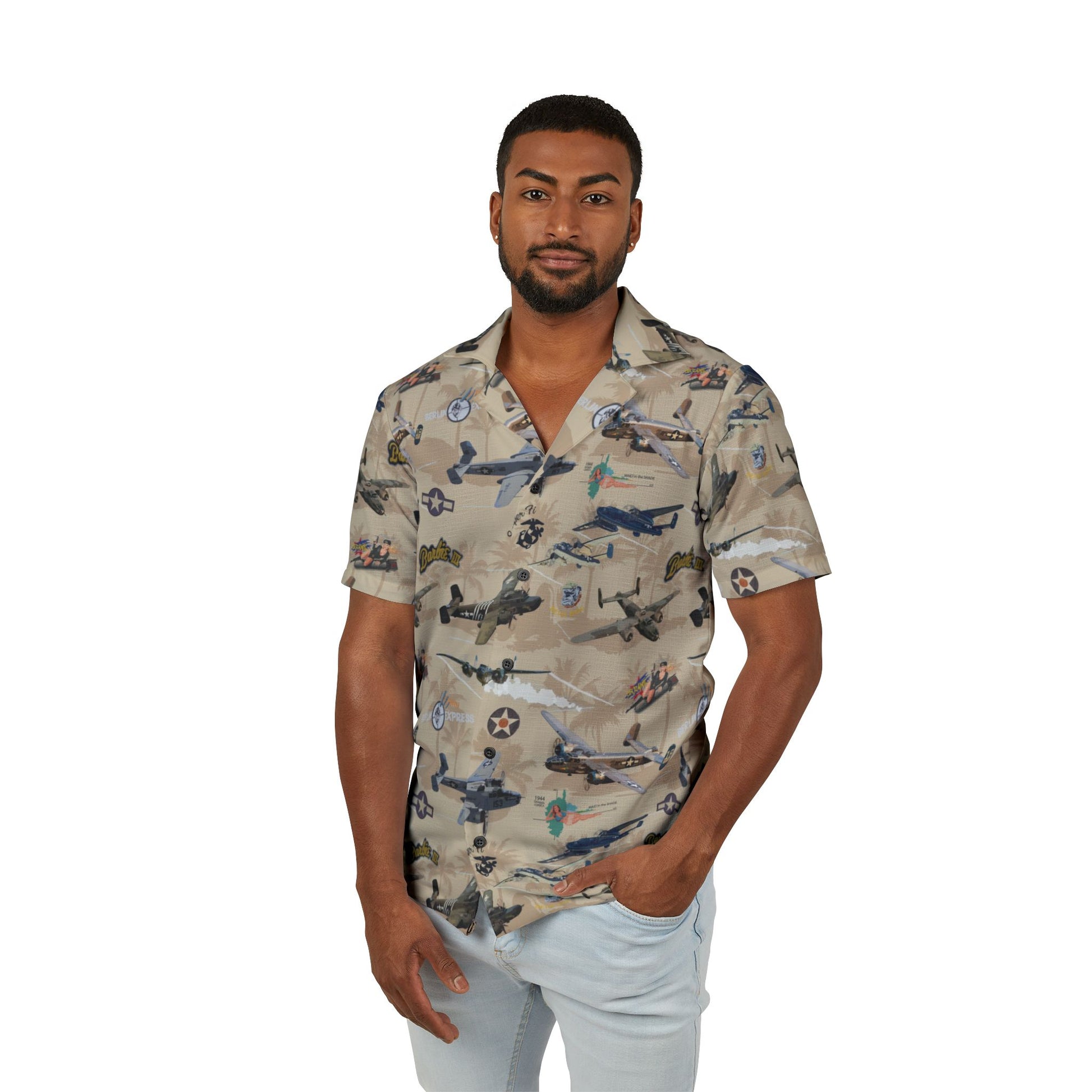 Men's Hawaiian Camp Shirt - Vintage Airplane Print, Perfect for Beach Days & Summer Gatherings