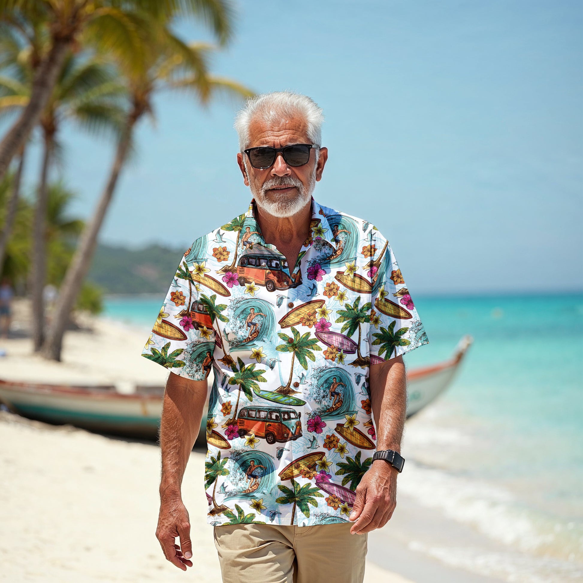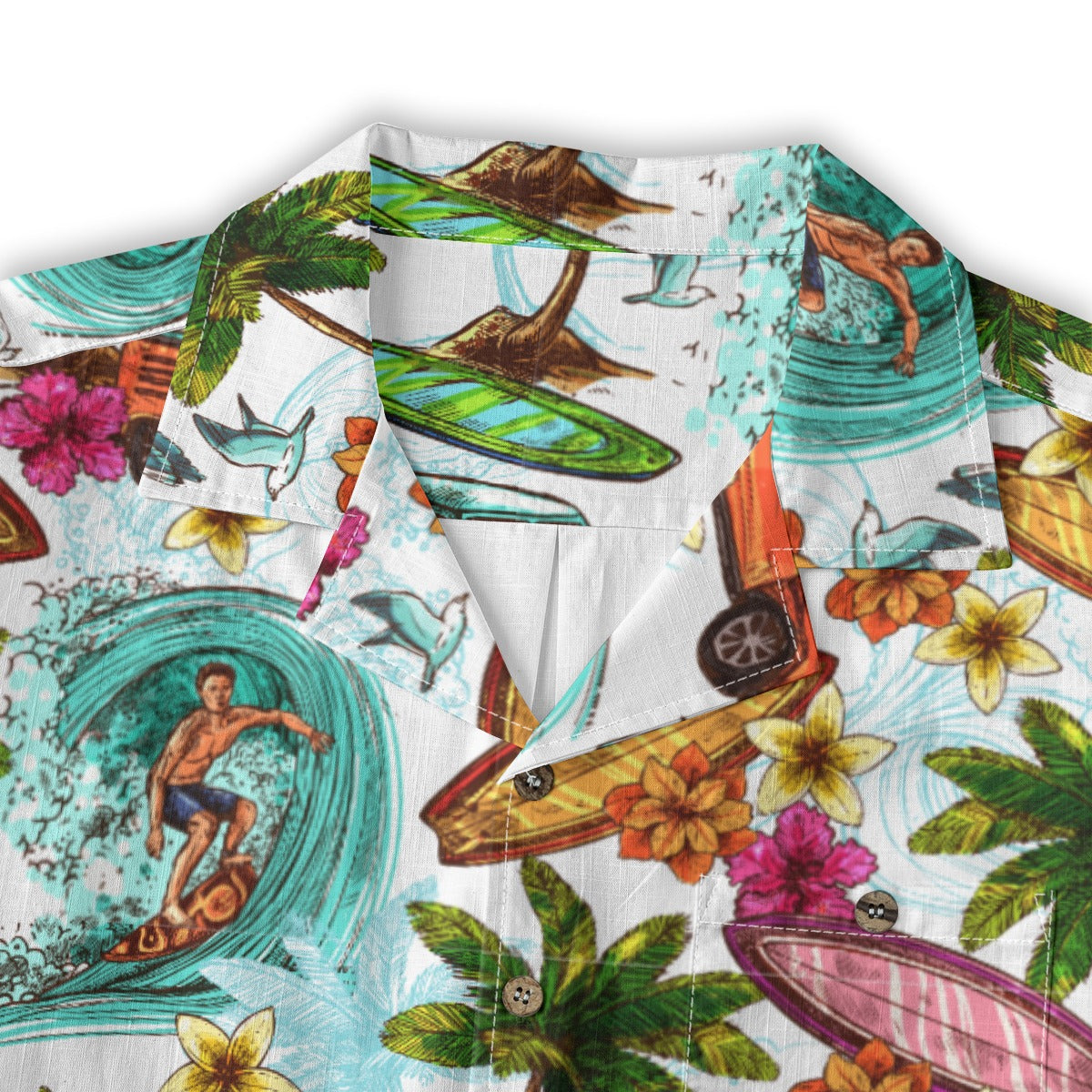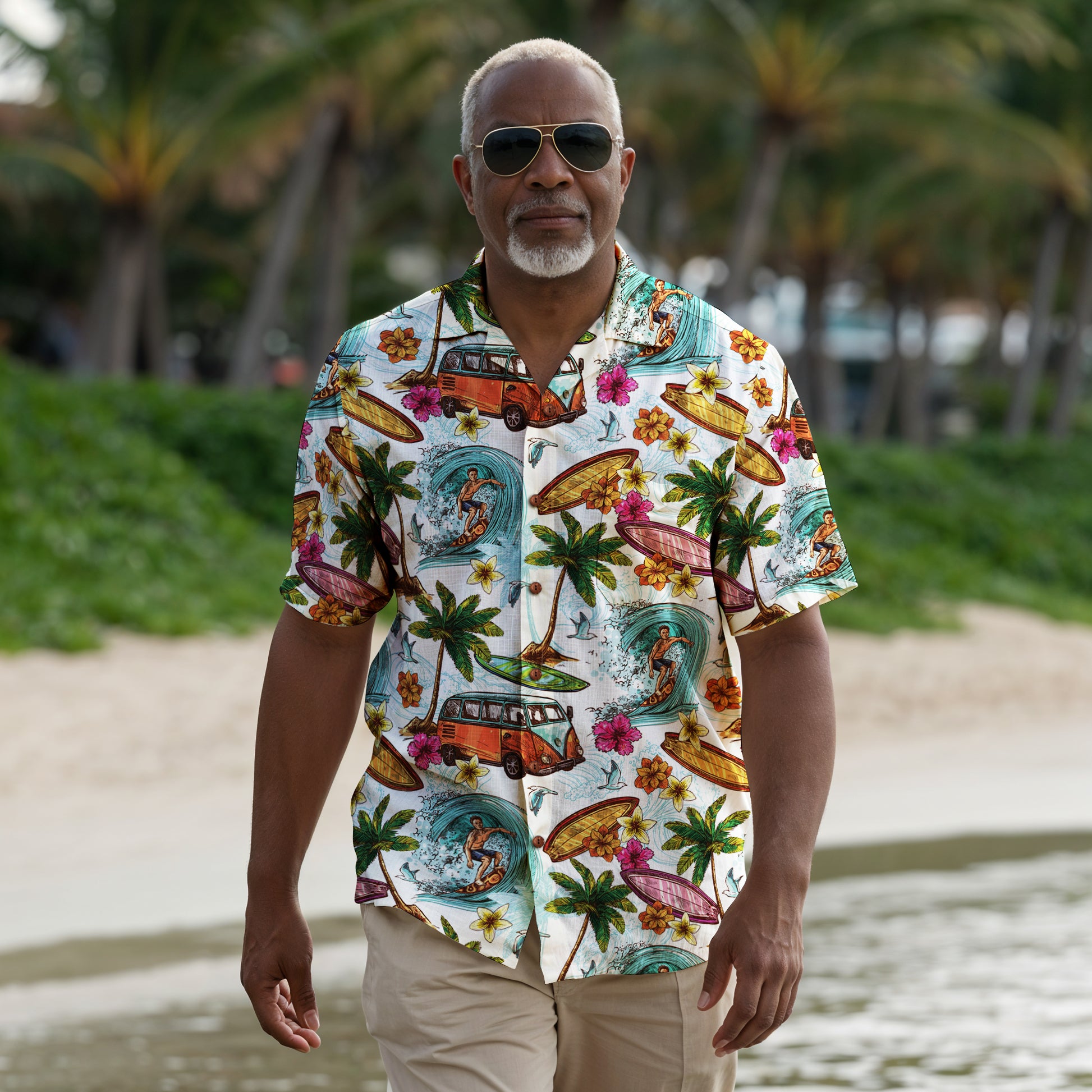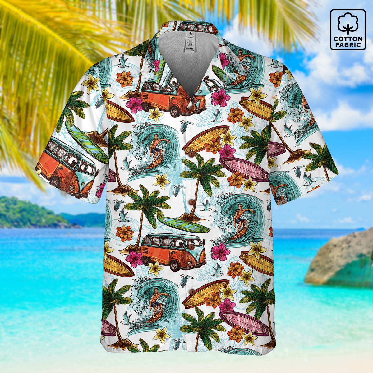 "Microbus and Surfboards" Hawaiian Shirt - 100% Cotton