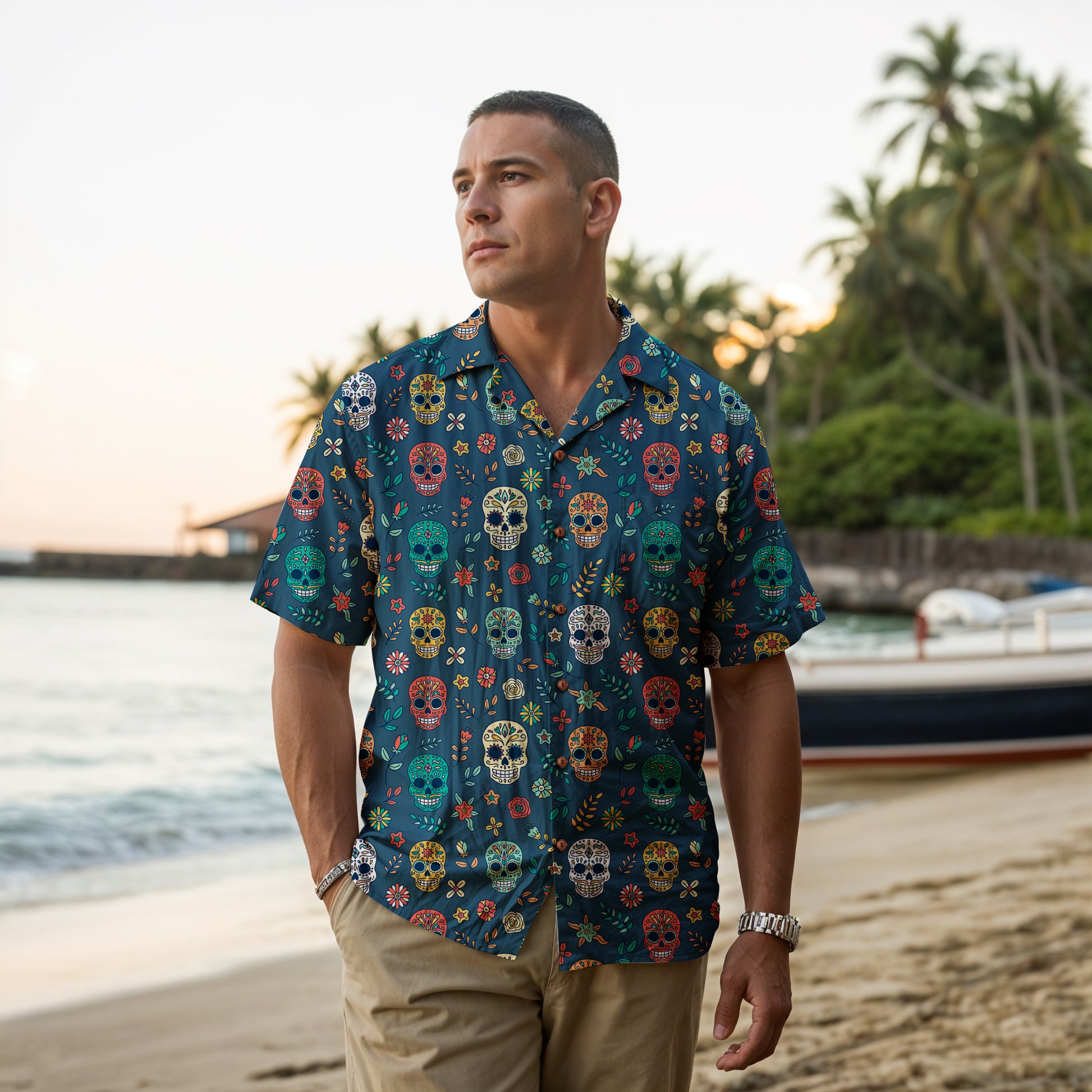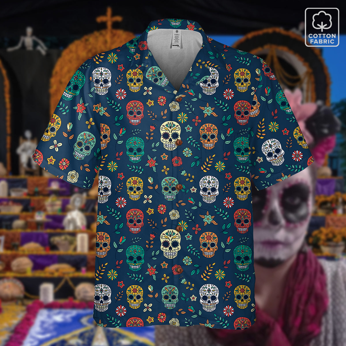 "Midnight Sugar Skulls" Cotton Celebration Shirt