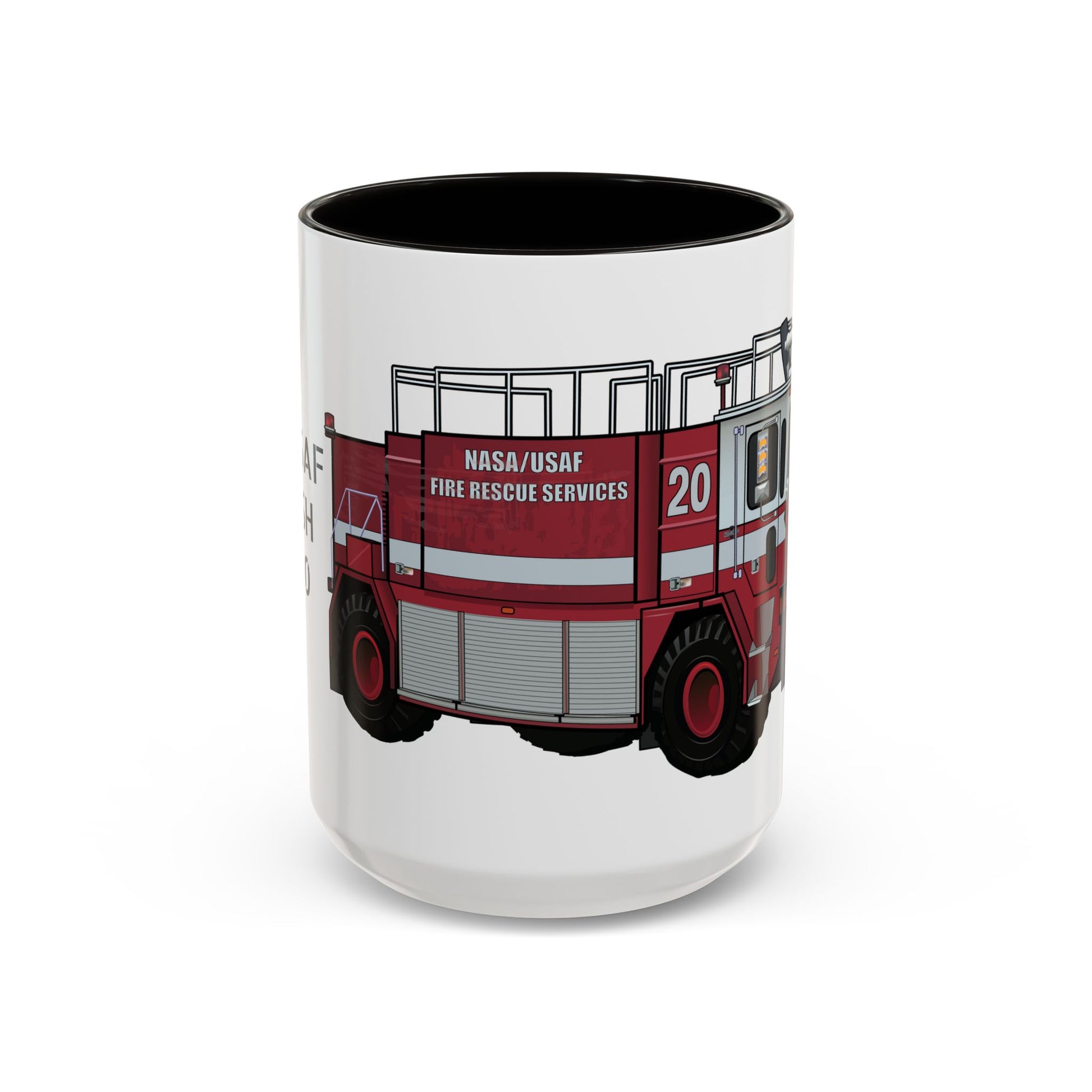 Wearing its unmistakable NASA / USAF Fire Rescue Services livery, the T-1500 symbolized readiness, precision, and teamwork at the heart of America’s space program. Whether you’ve served on the line, maintained these rigs, or simply admire aerospace history, this mug delivers legacy and pride with every sip.