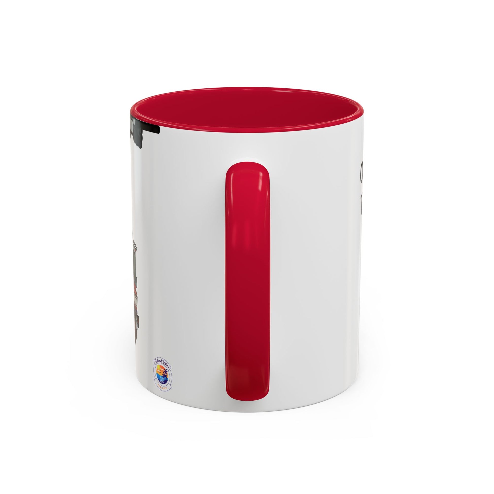Glossy white ceramic with red handle and interior contrast
