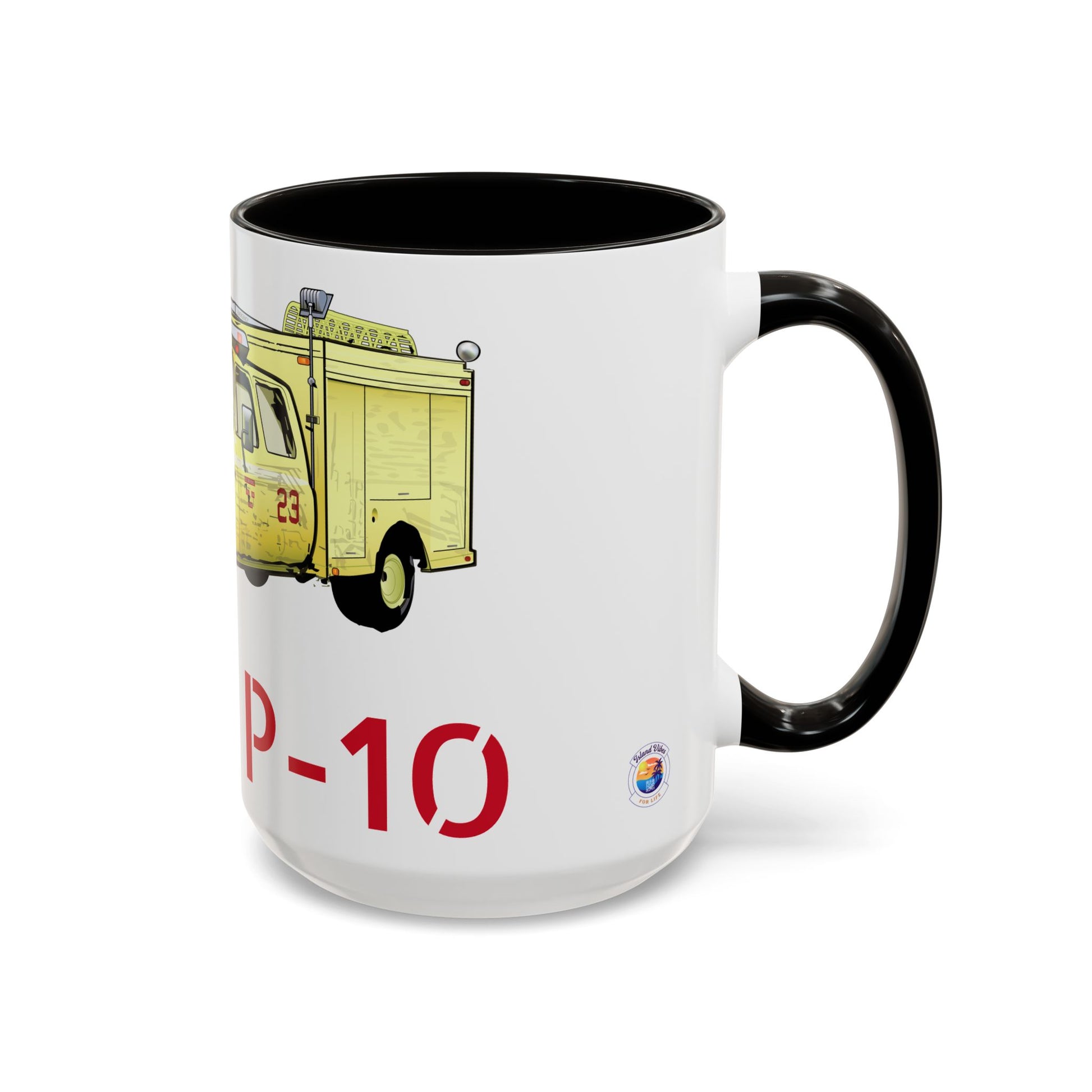 Built on rugged Chevy-based platforms and equipped for all-terrain rescue operations, the P-10 served proudly across U.S. Air Force and Marine Corps bases for decades. Whether you worked the line, turned the wrenches, or simply appreciate military fire-rescue history, this mug brings that same sense of purpose to every cup. Durable, detailed, and ready for service — just like the trucks that inspired it.