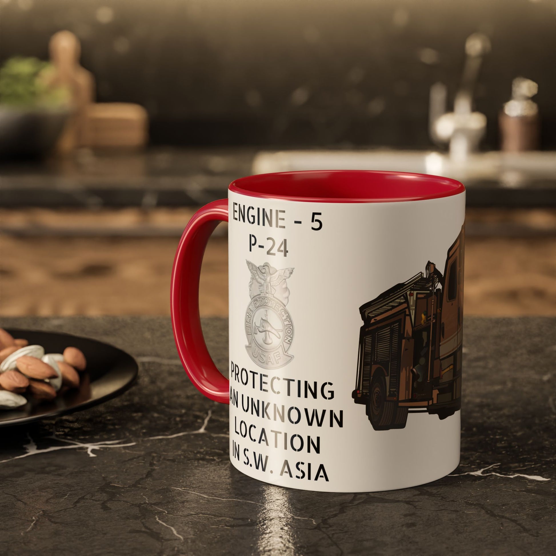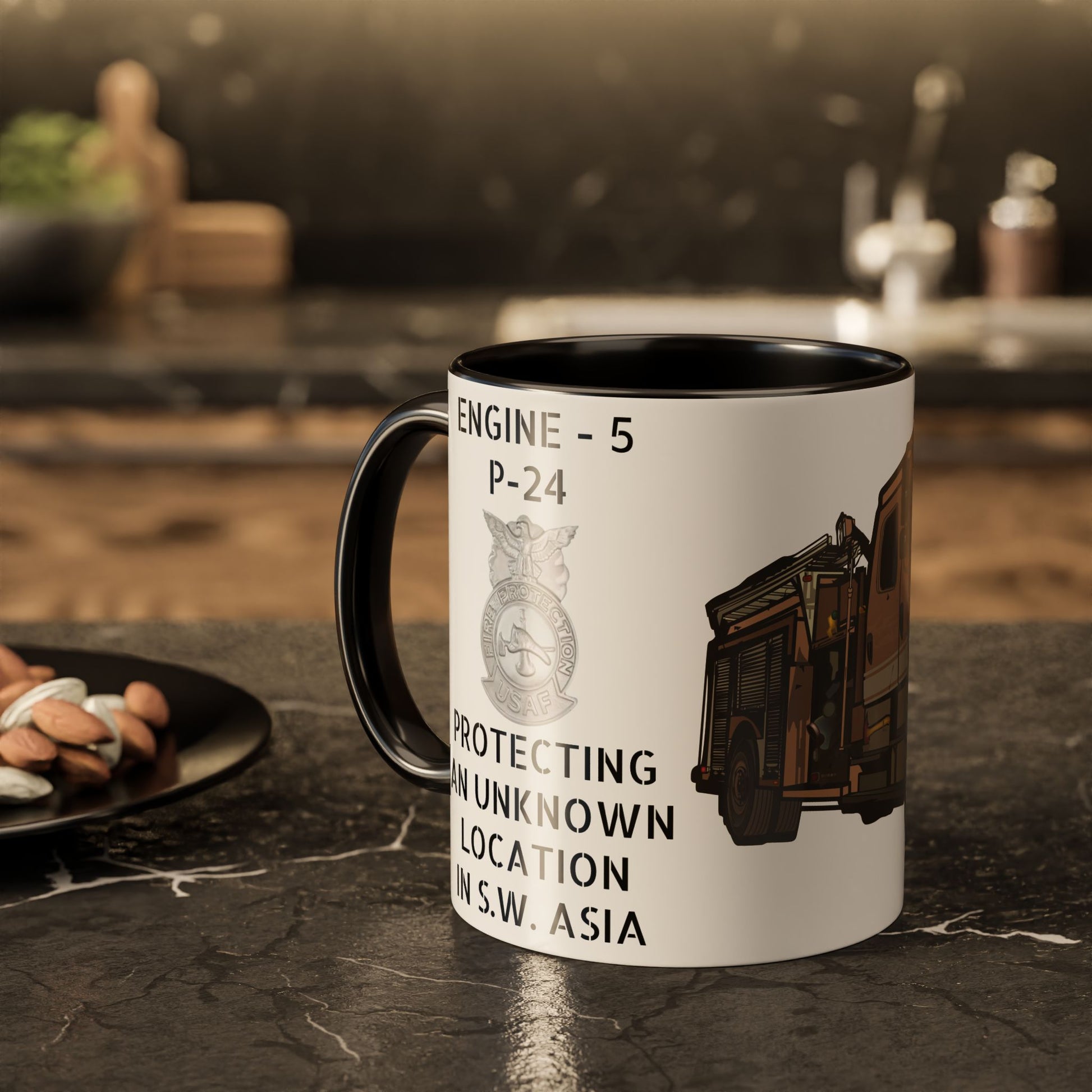 This design is inspired by an actual P-24 that served at an undisclosed location in Southwest Asia, representing the dedication, professionalism, and courage of the firefighters who stood ready when every second mattered. Whether you’ve been there, trained with them, or simply respect those who answered the call, this mug delivers pride and purpose with every sip.