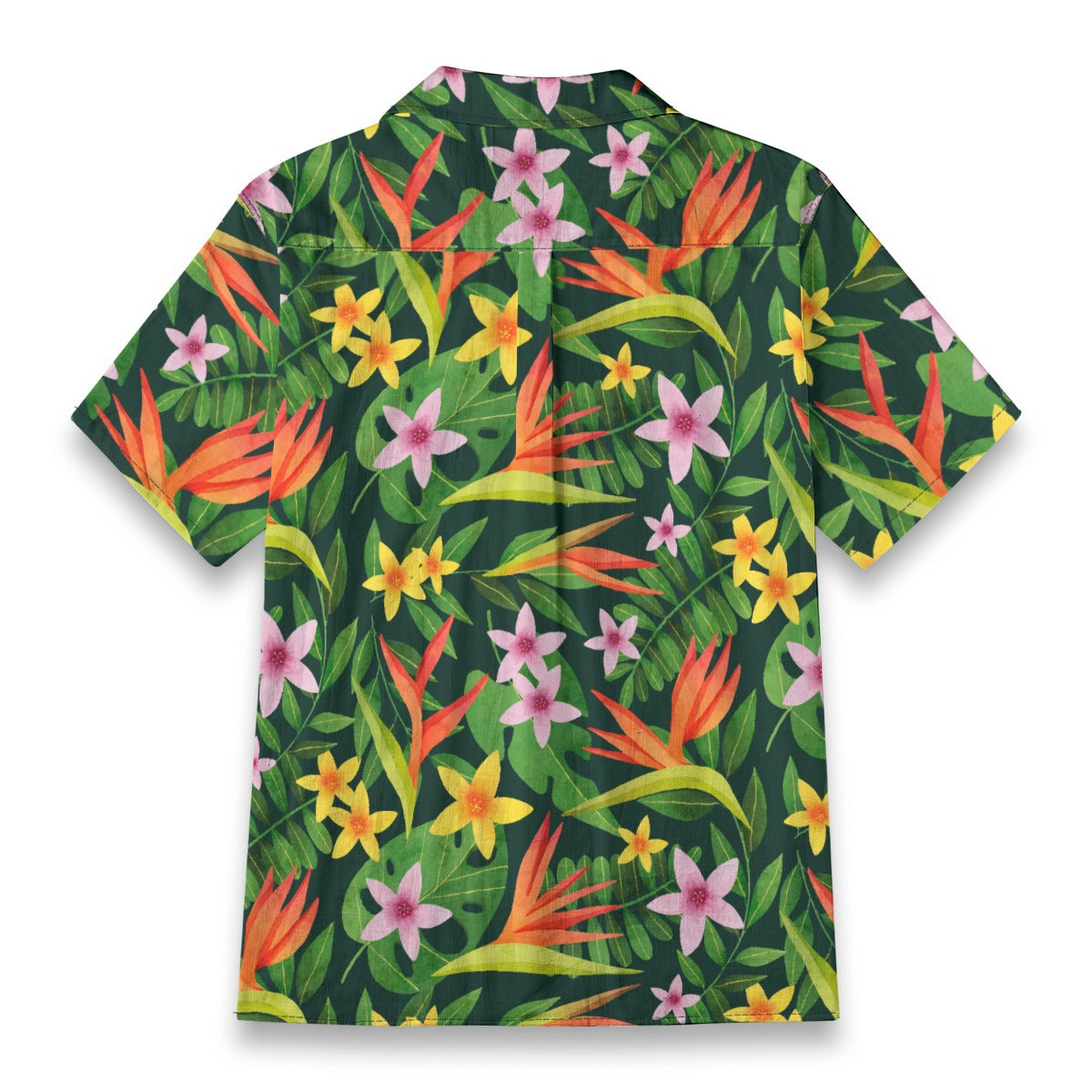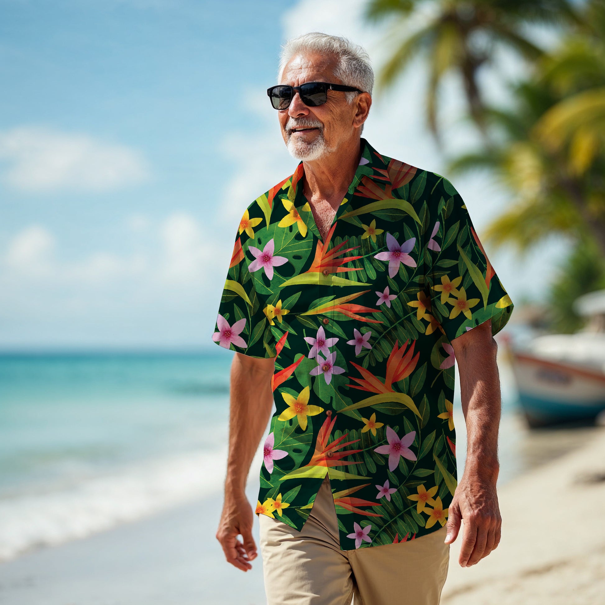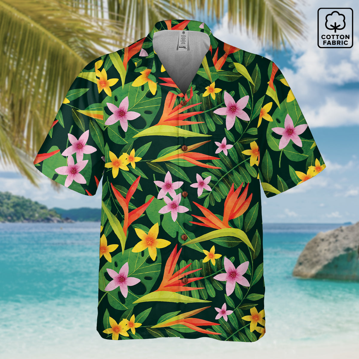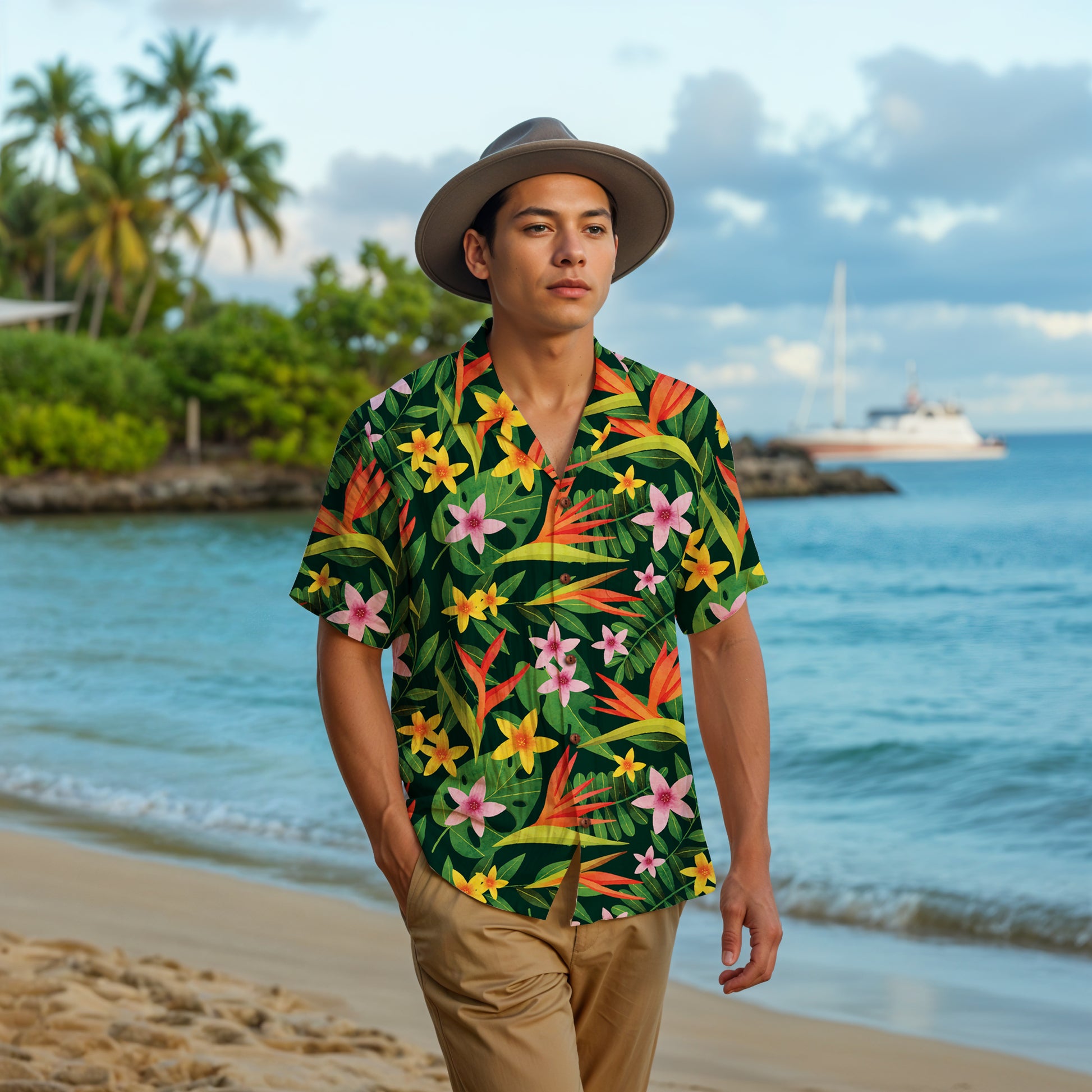 🦜 Unique Design: Adorned with vibrant tropical patterns, this shirt embodies the untamed spirit of the islands. It's more than just clothing; it's a wearable adventure that brings the exotic allure of the island scene to your wardrobe.