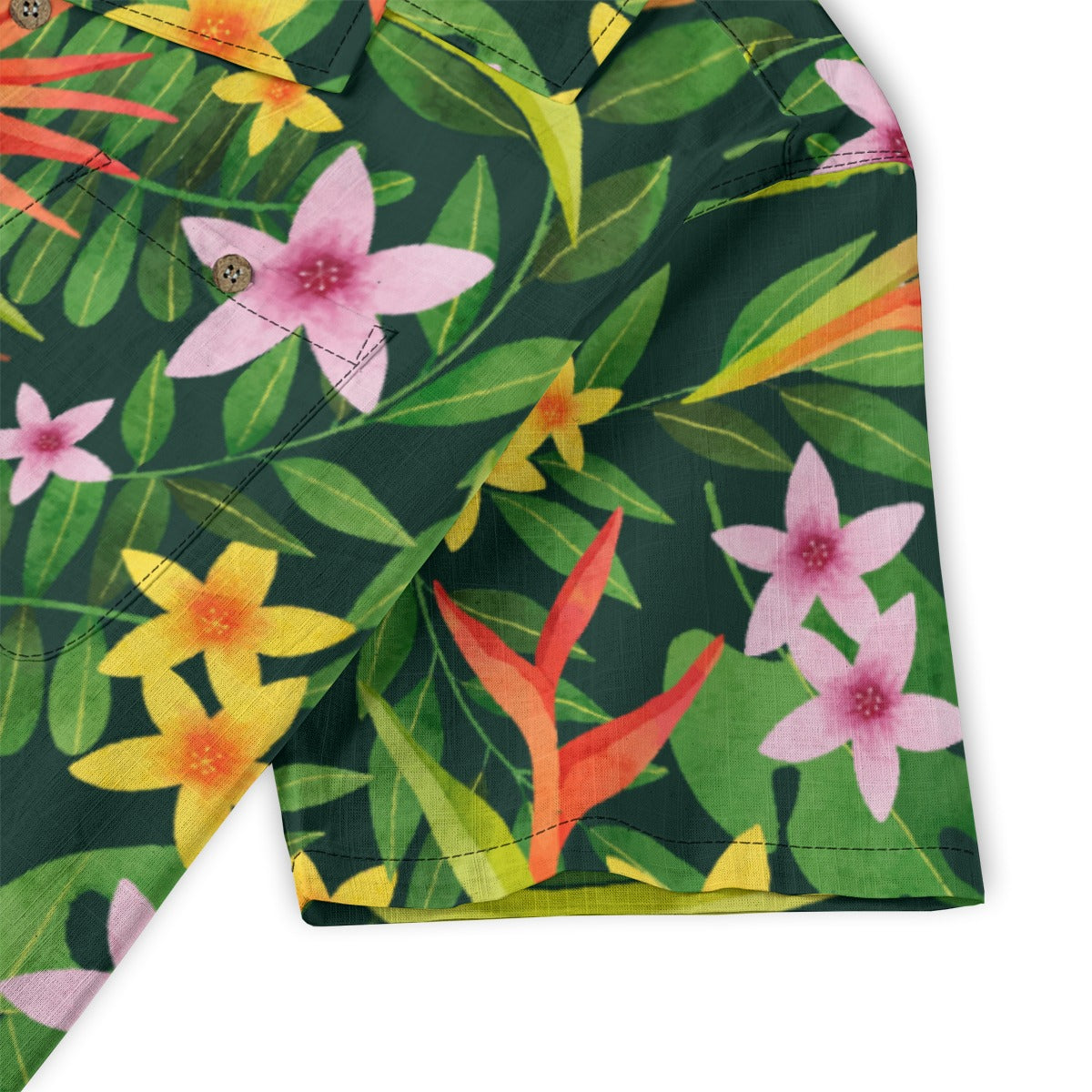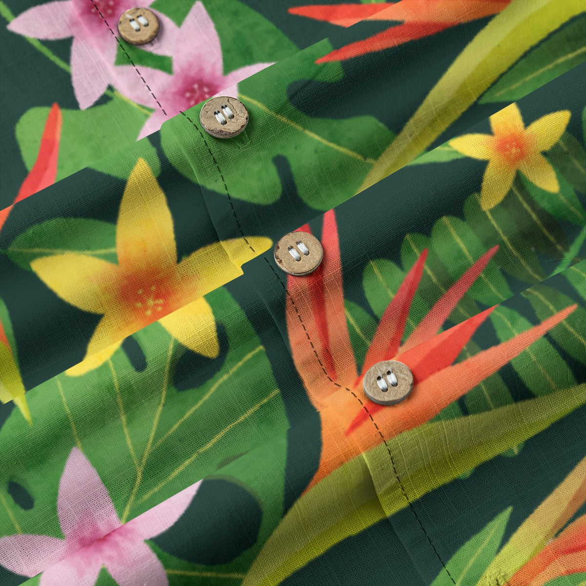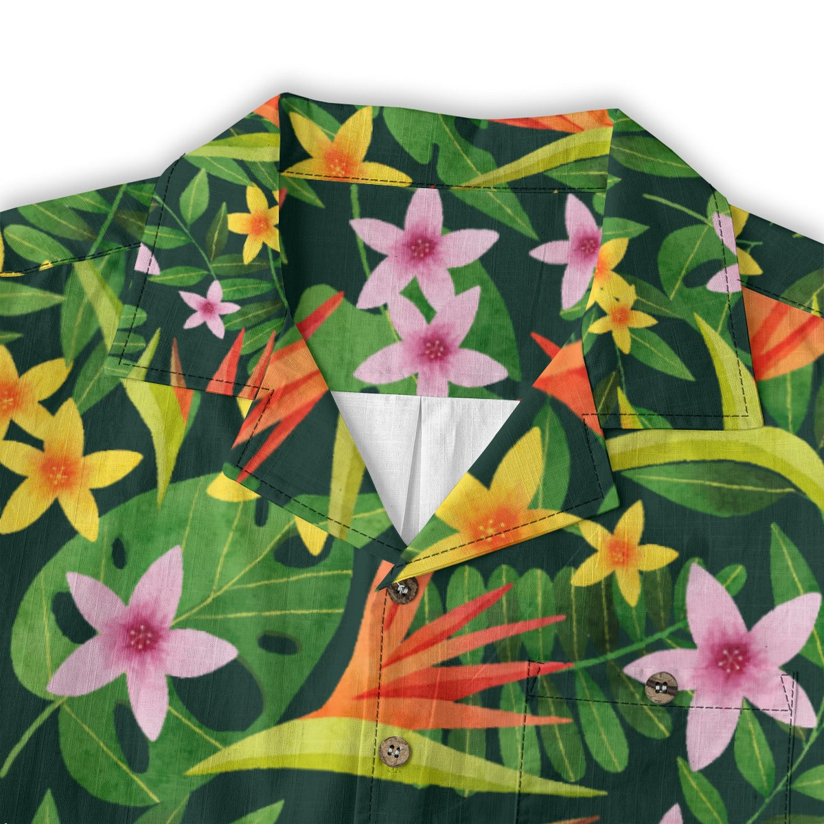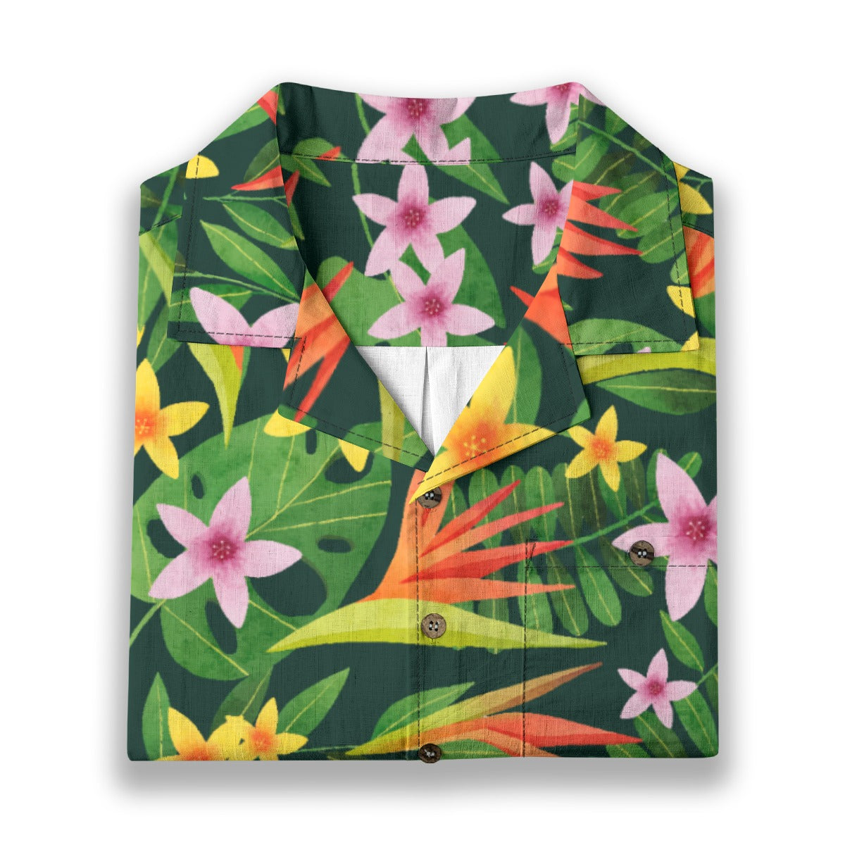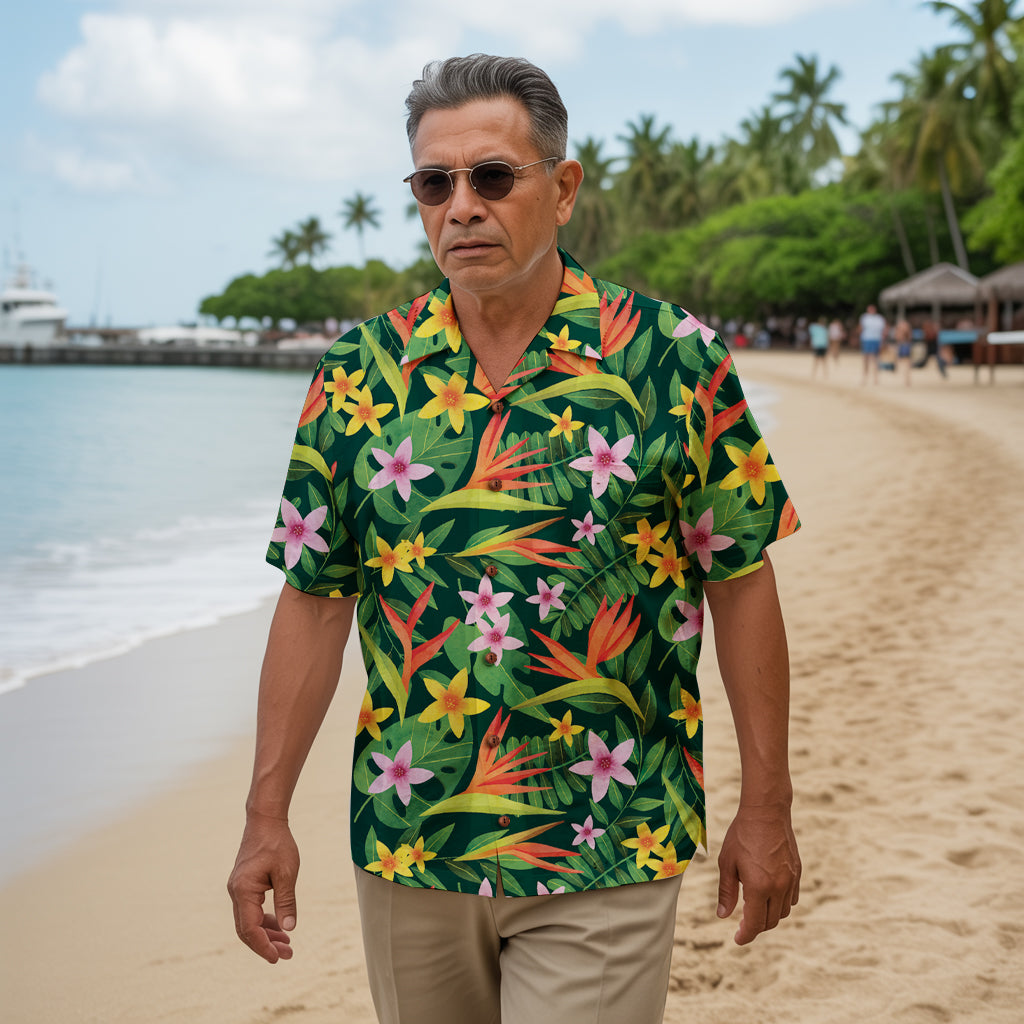🦜 Unique Design: Adorned with vibrant tropical patterns, this shirt embodies the untamed spirit of the islands. It's more than just clothing; it's a wearable adventure that brings the exotic allure of the island scene to your wardrobe.