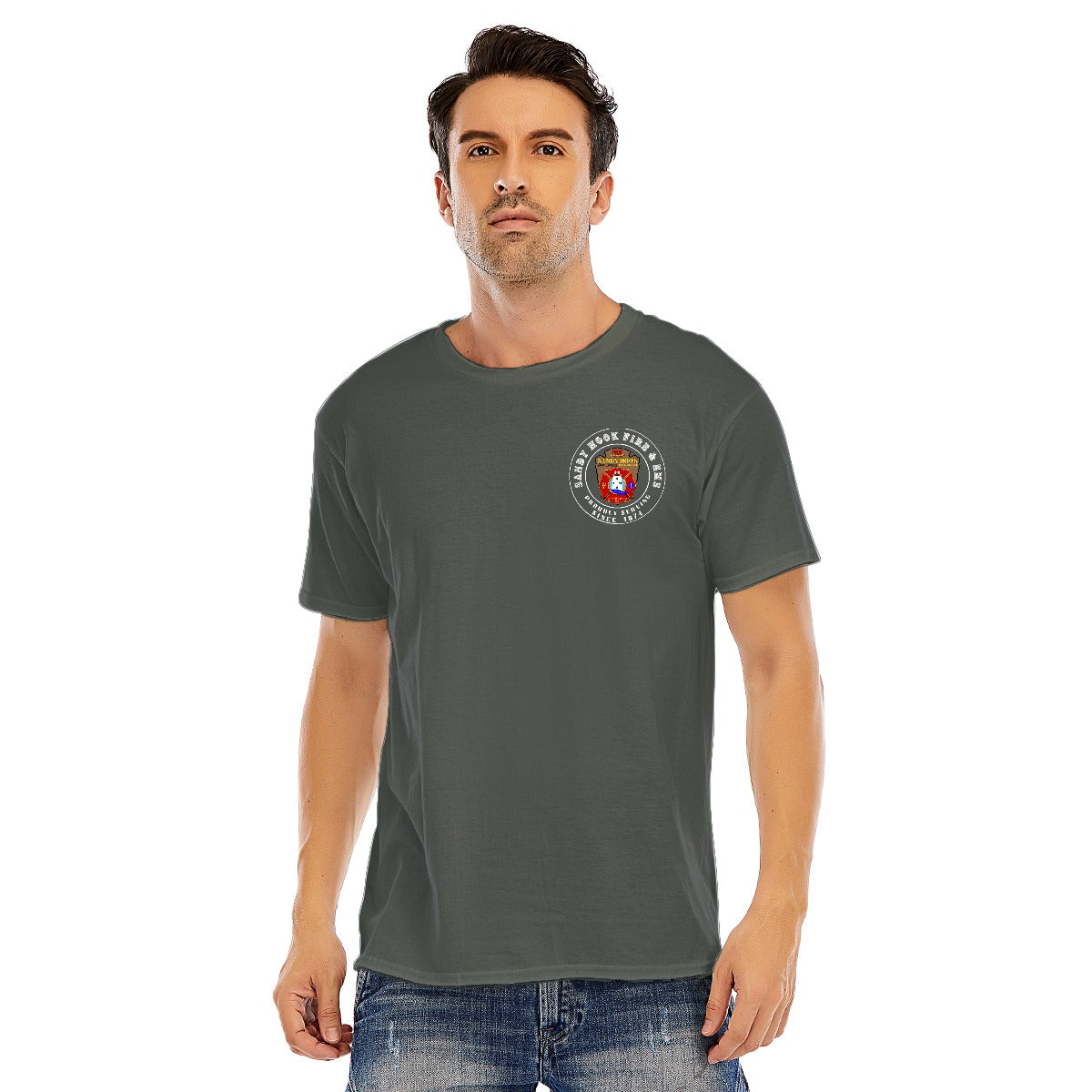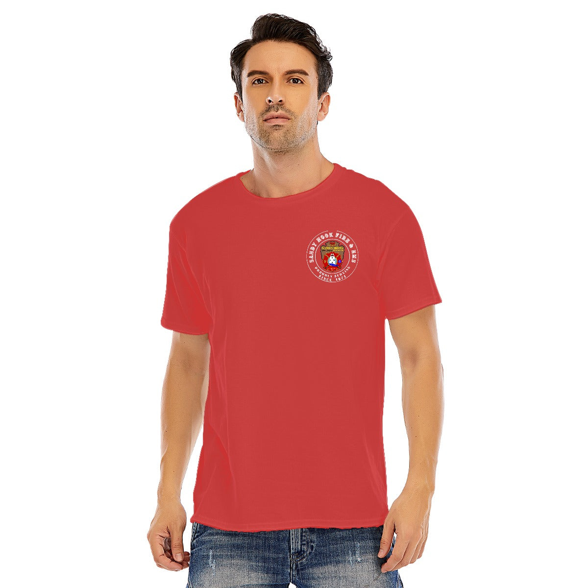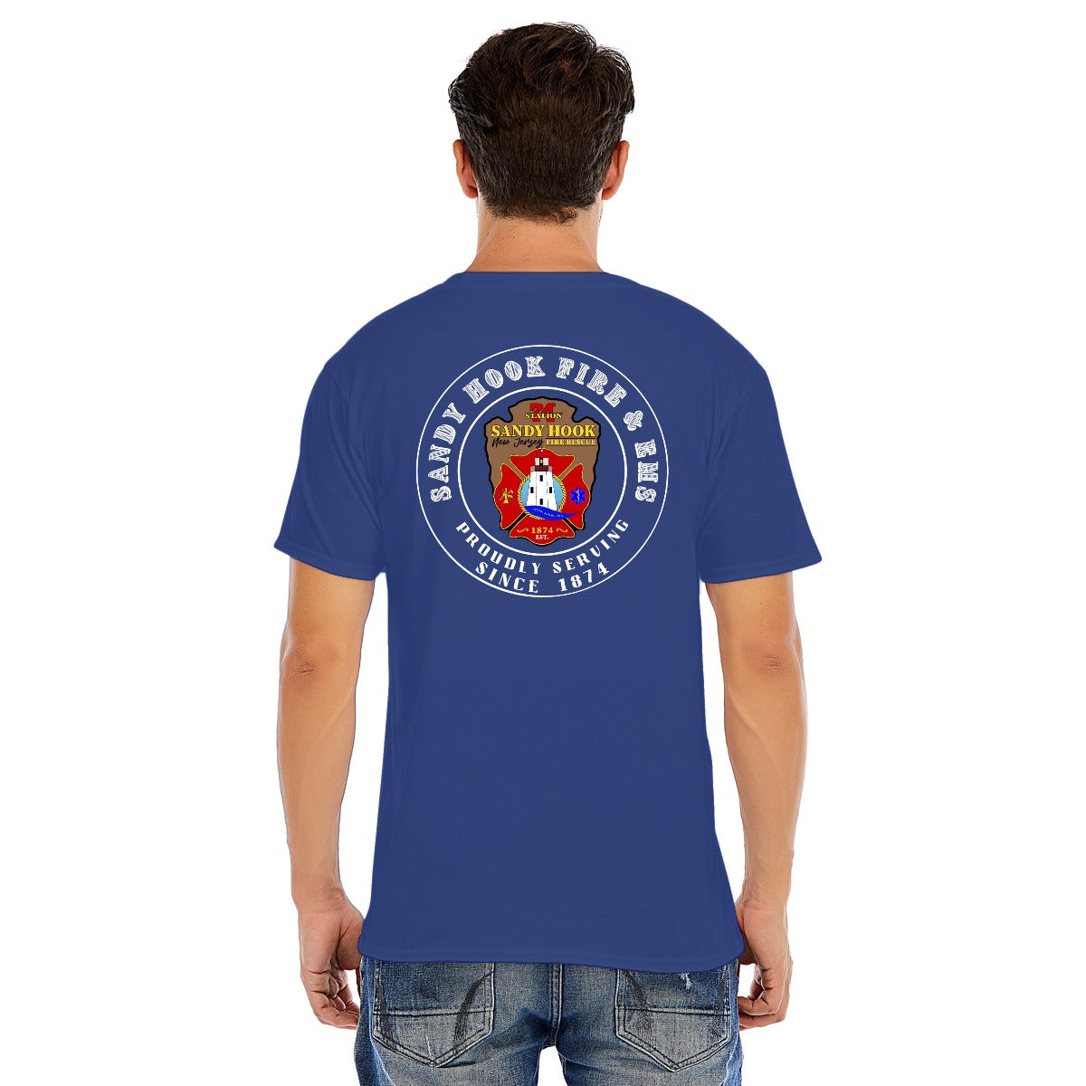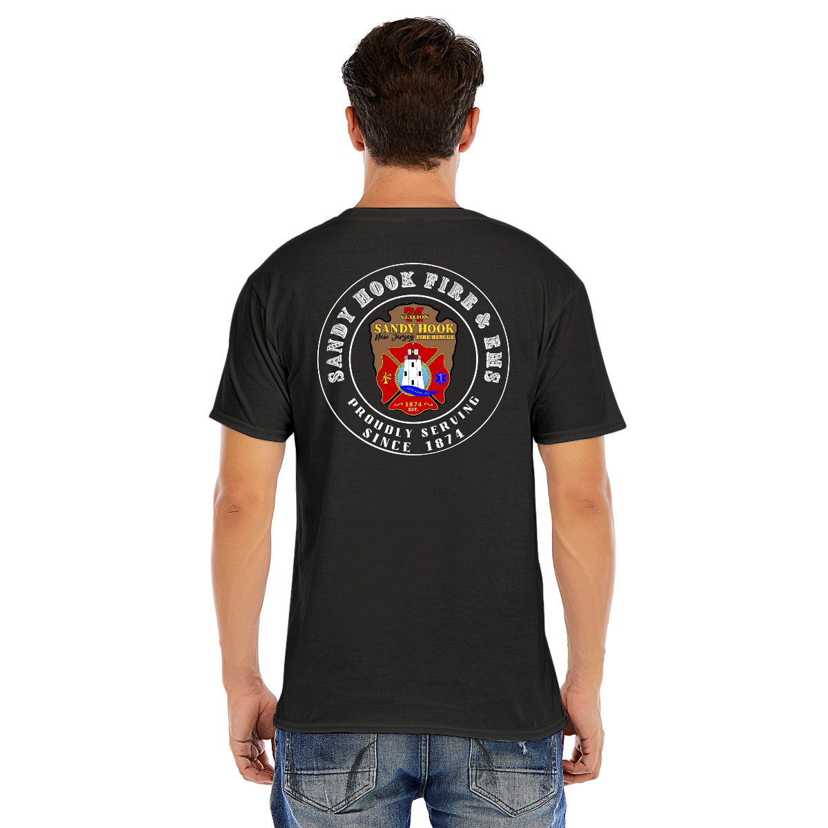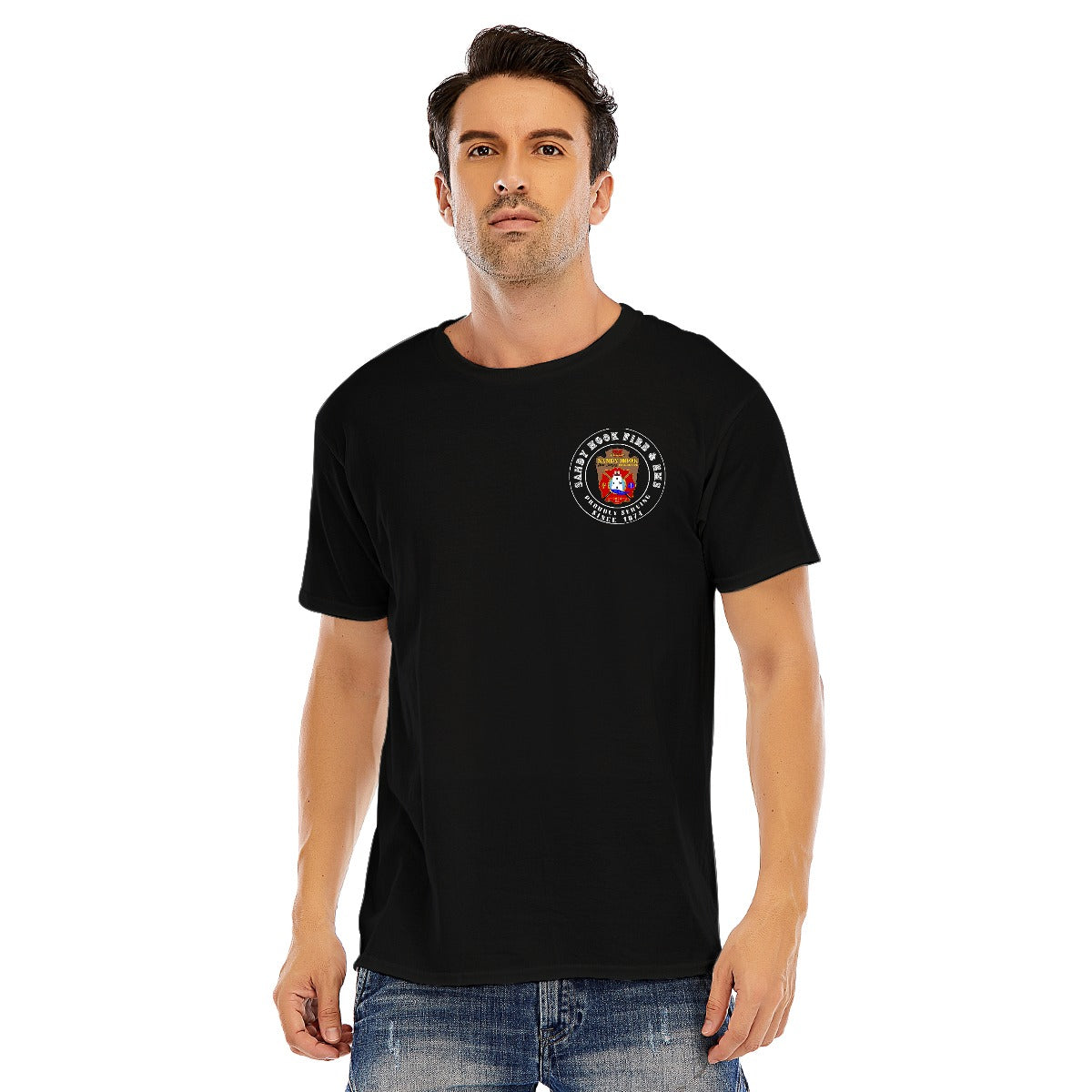 DTF Printing: Bold, vibrant designs on the front and back, showcasing the iconic Sandy Hook Fire & EMS emblem in stunning detail.
