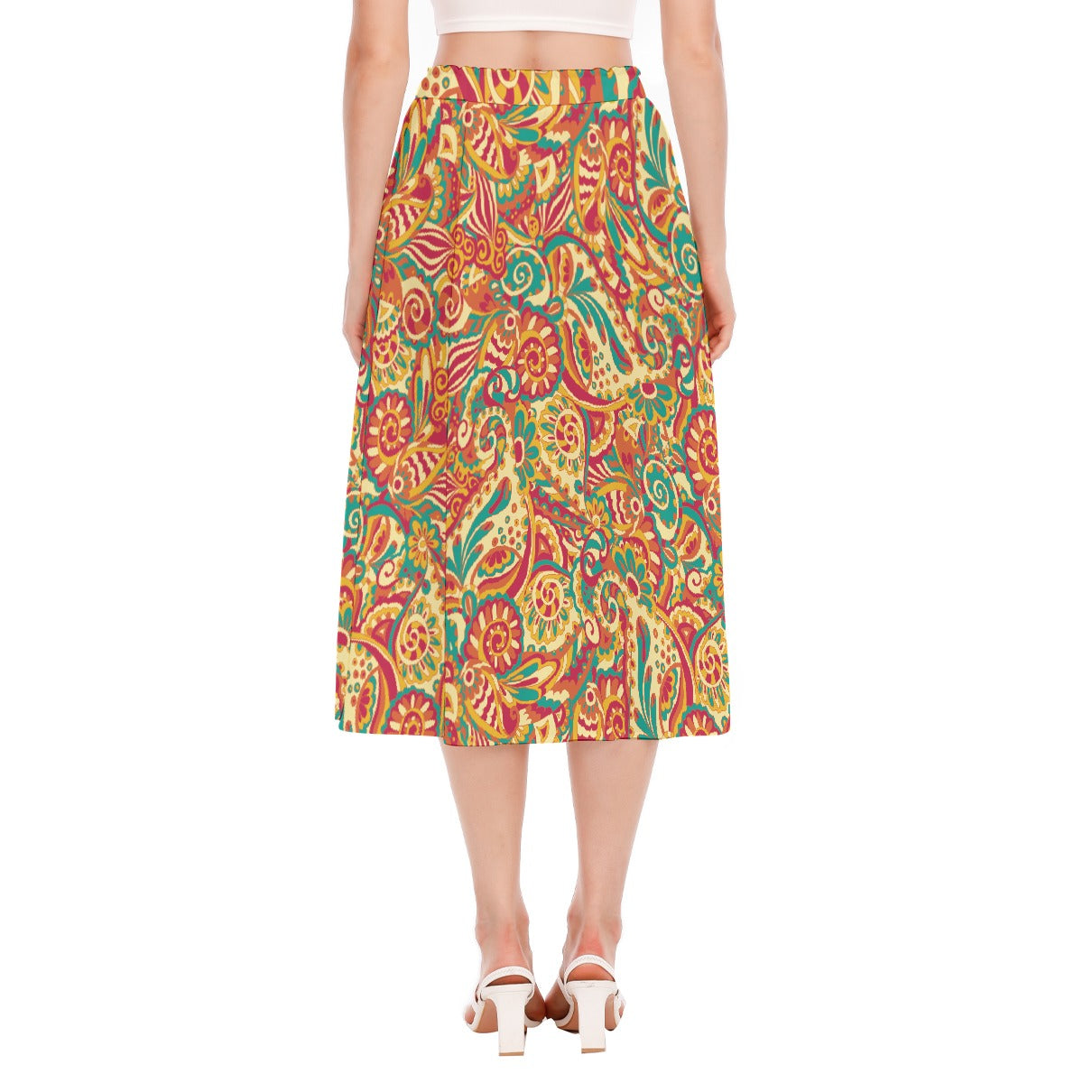 "Sunset Swirl Paisley" Women's Long Section Chiffon Skirt
