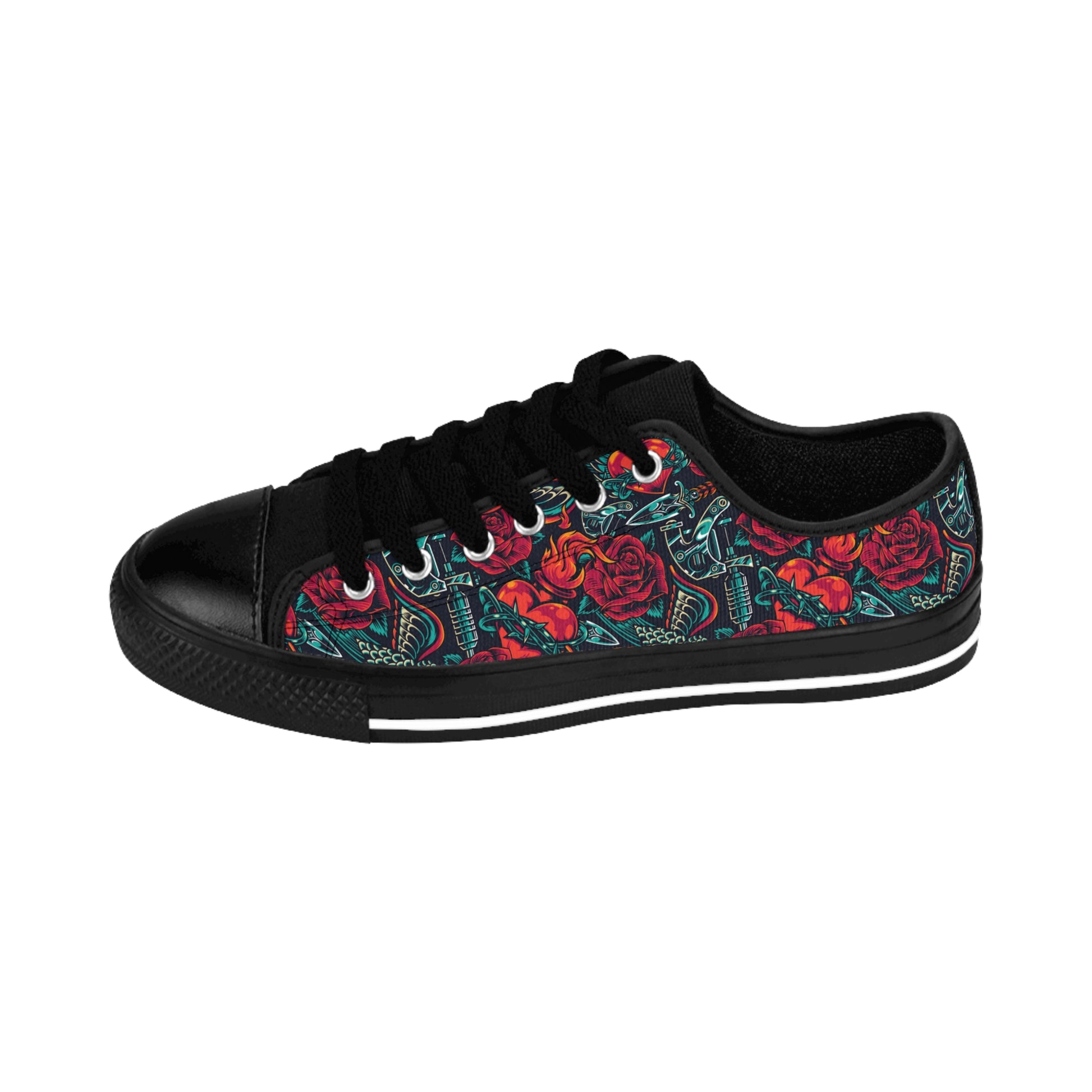 With the "Tattoos 'n Hearts" kicks, every step becomes a work of art. Walk with confidence and make a bold statement—let your shoes be the ultimate canvas for your rebellious soul. 🎉🌸 #TattoosAndHearts #InkYourStep #BoldKicks