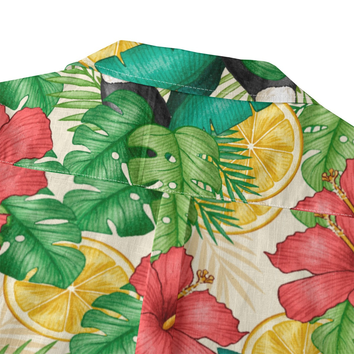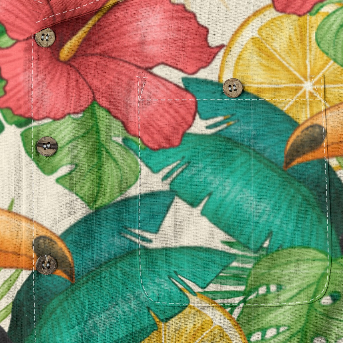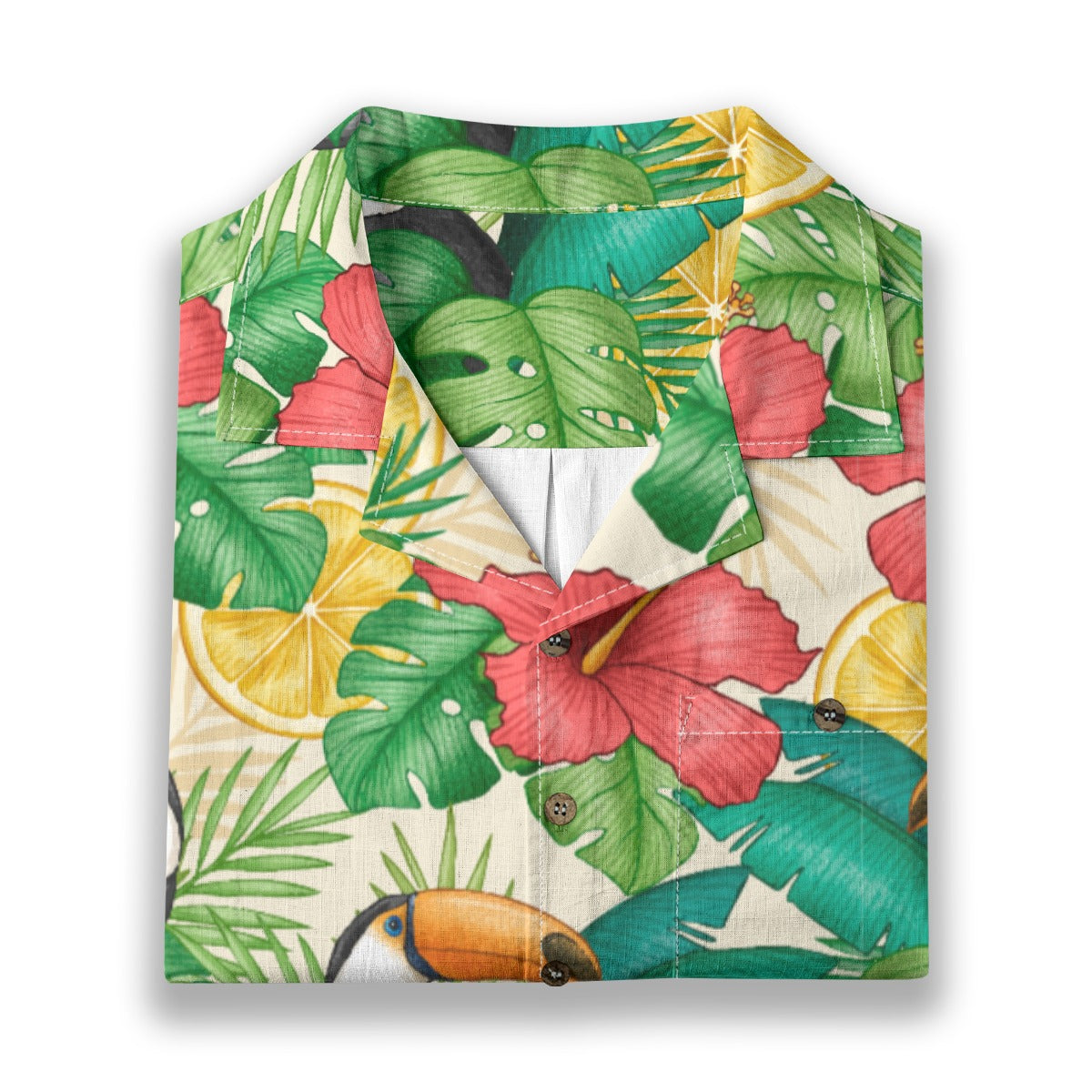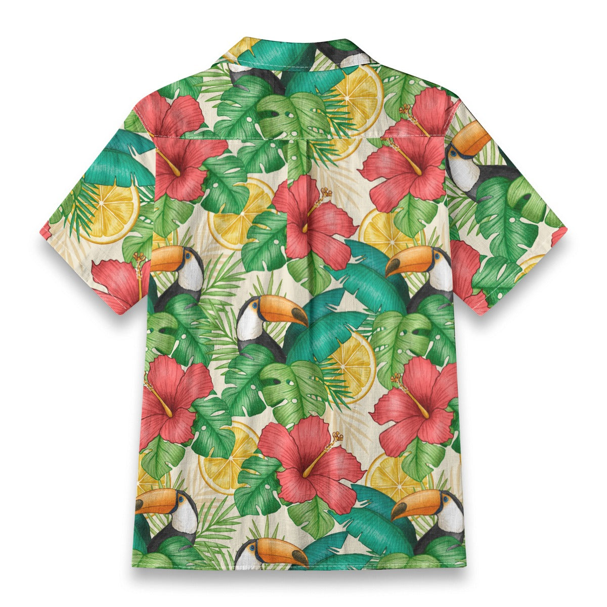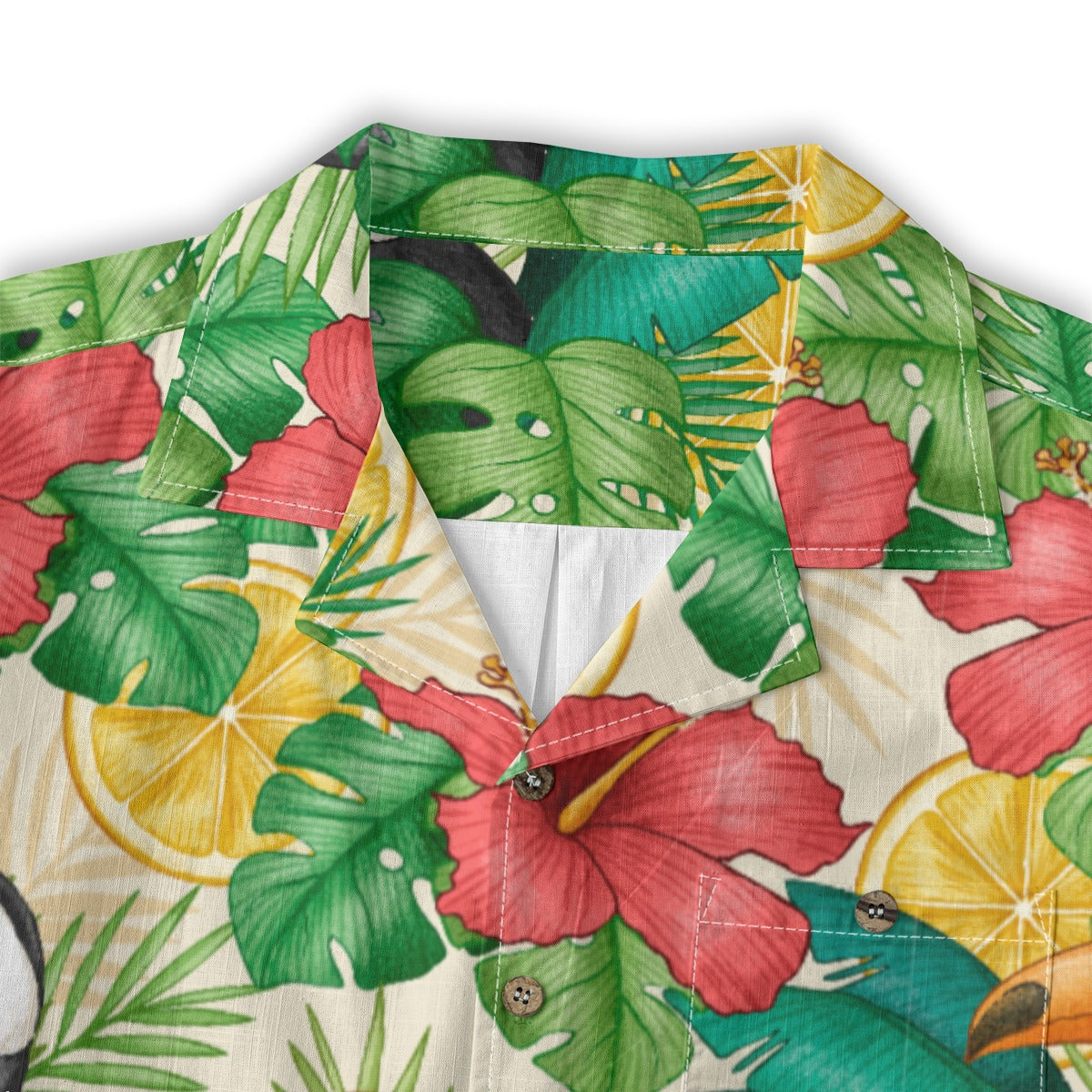 "Toucans Hiding in Hibiscus" Hawaiian Shirt - 100% Cotton