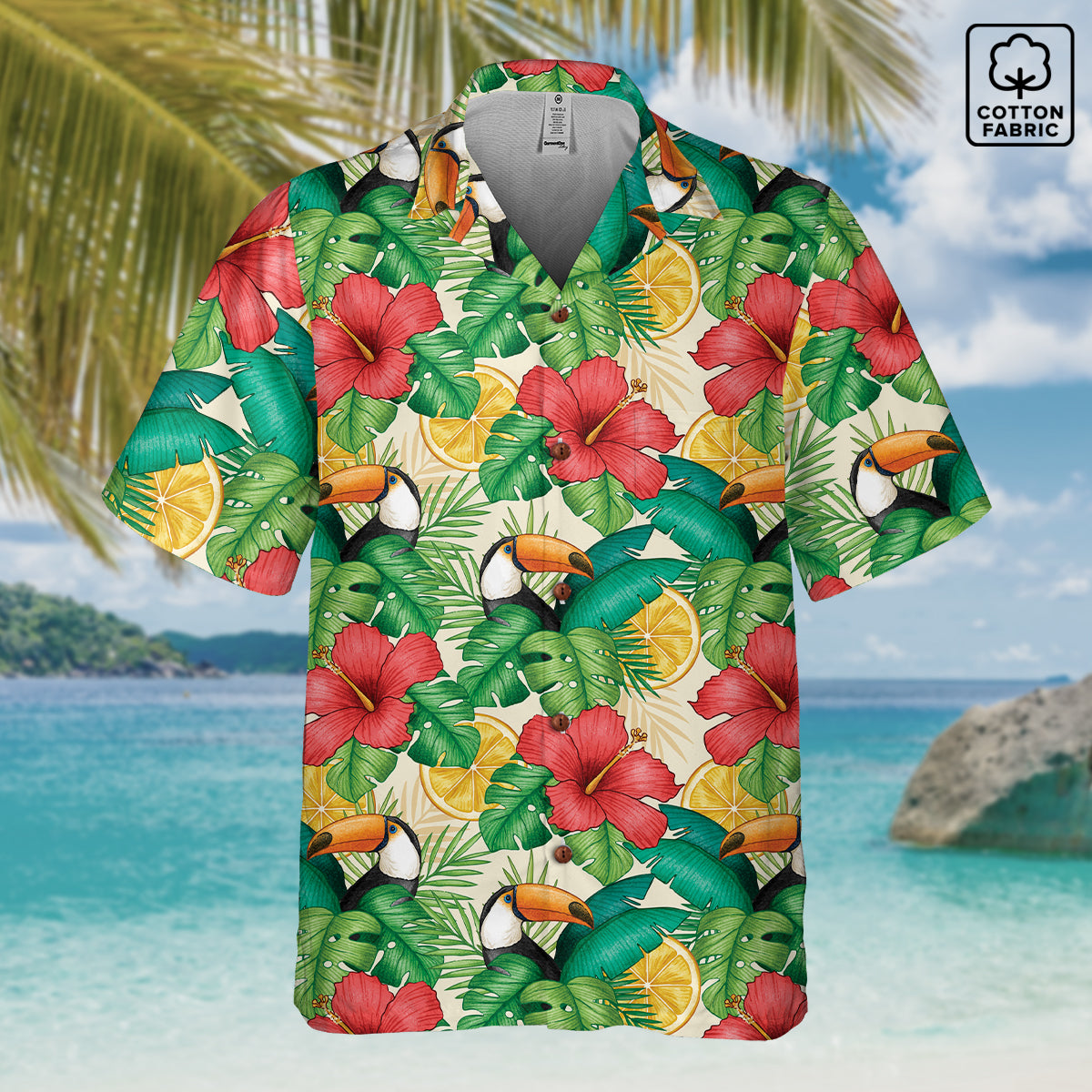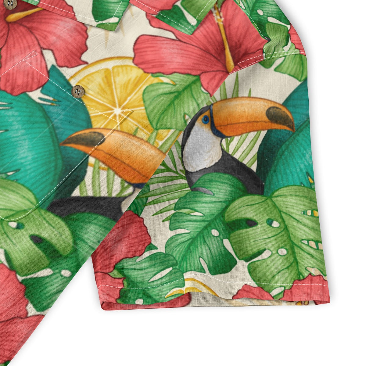 "Toucans Hiding in Hibiscus" Hawaiian Shirt in Cotton! 🌺🌴