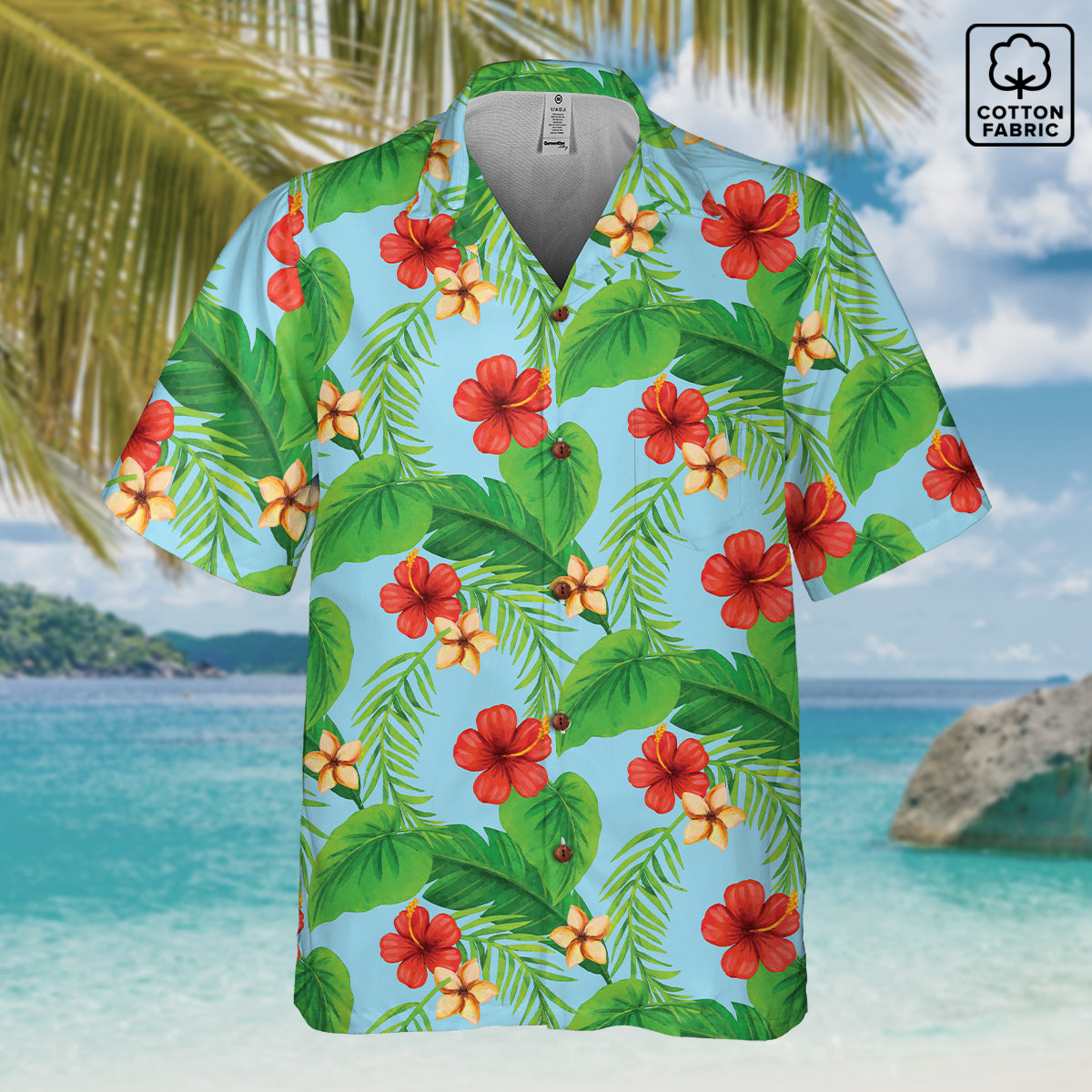 🌺Introducing Our Hawaiian Shirt "Tropical Dreamscapes: Skybound Hibiscus" In Cotton! - Where Your Summer Fantasy Takes Flight! 🌺
