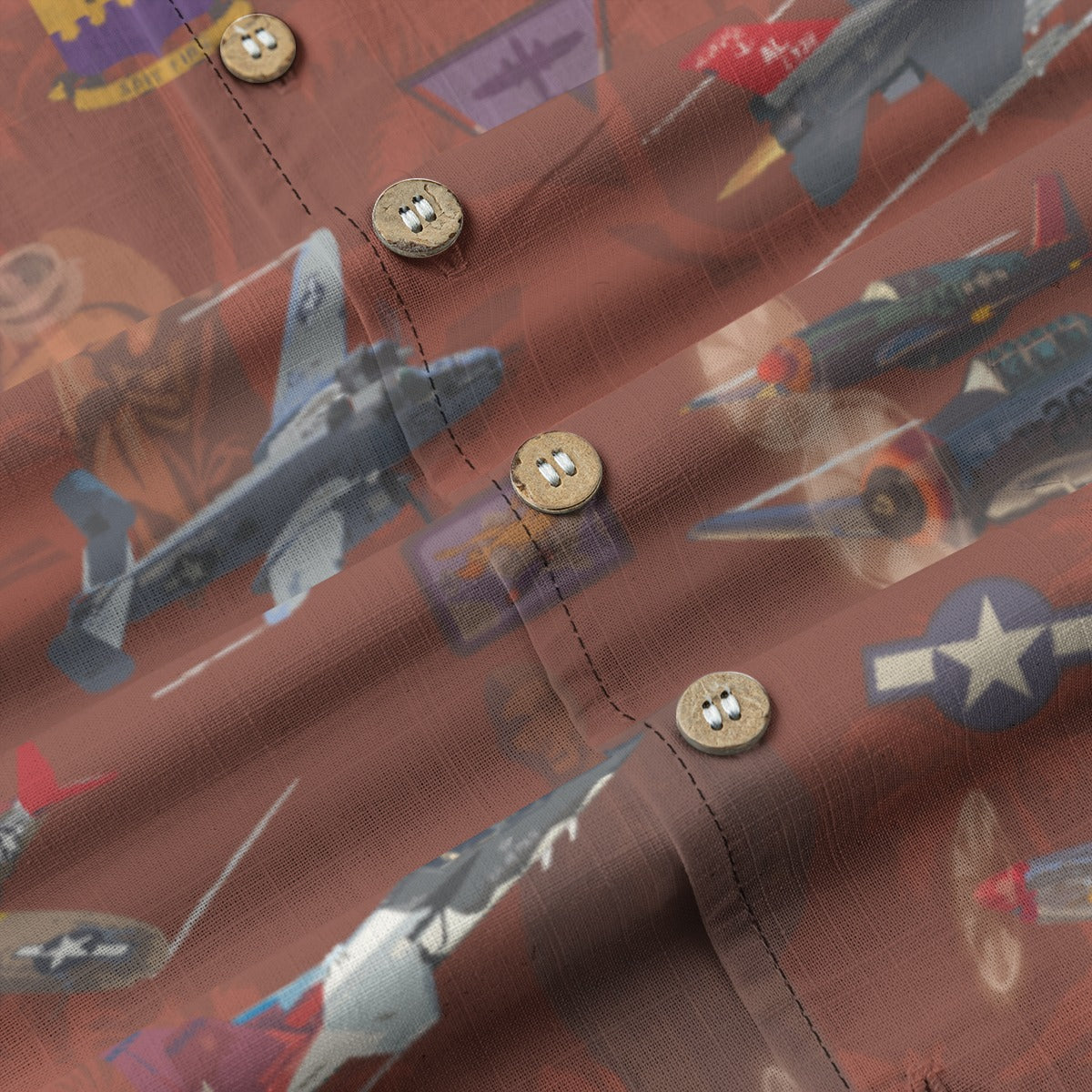 🌺 Classic Hawaiian Style with a Patriotic Twist: Designed with a Roman collar, lapel, button closure, and regular fit, this shirt brings together a timeless Hawaiian style with a tribute to military heroism. The vibrant colors—Gold, Red, Green, Beige, and Blue—and iconic aircraft patterns make it a standout piece that’s perfect for any occasion. 🌴👔